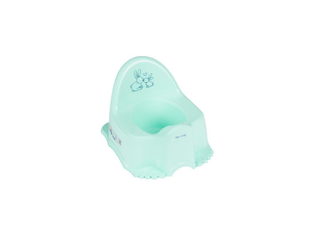 Detský nočník s obrázkom králikov v krásnych pastelových farbach. Je ľahký, kompaktný a vďaka svojmu tvaru, vysokej opierke chrbta a širokému sedátku poskytuje deťom pohodlie. Nočník po vyčúraniu hrá melódiu. Rozmery dxvxš cca 38x23x25 cm.