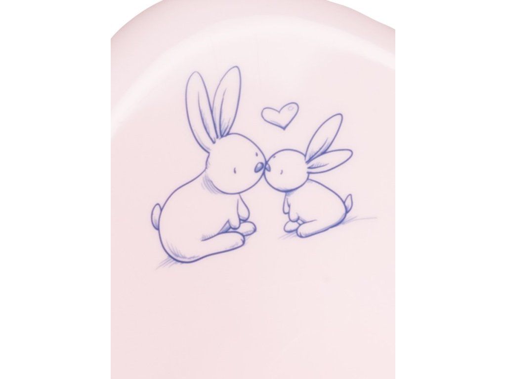 Detský nočník s obrázkom králikov v krásnych pastelových farbach. Je ľahký, kompaktný a vďaka svojmu tvaru, vysokej opierke chrbta a širokému sedátku poskytuje deťom pohodlie. Nočník po vyčúraniu hrá melódiu. Rozmery dxvxš cca 38x23x25 cm.