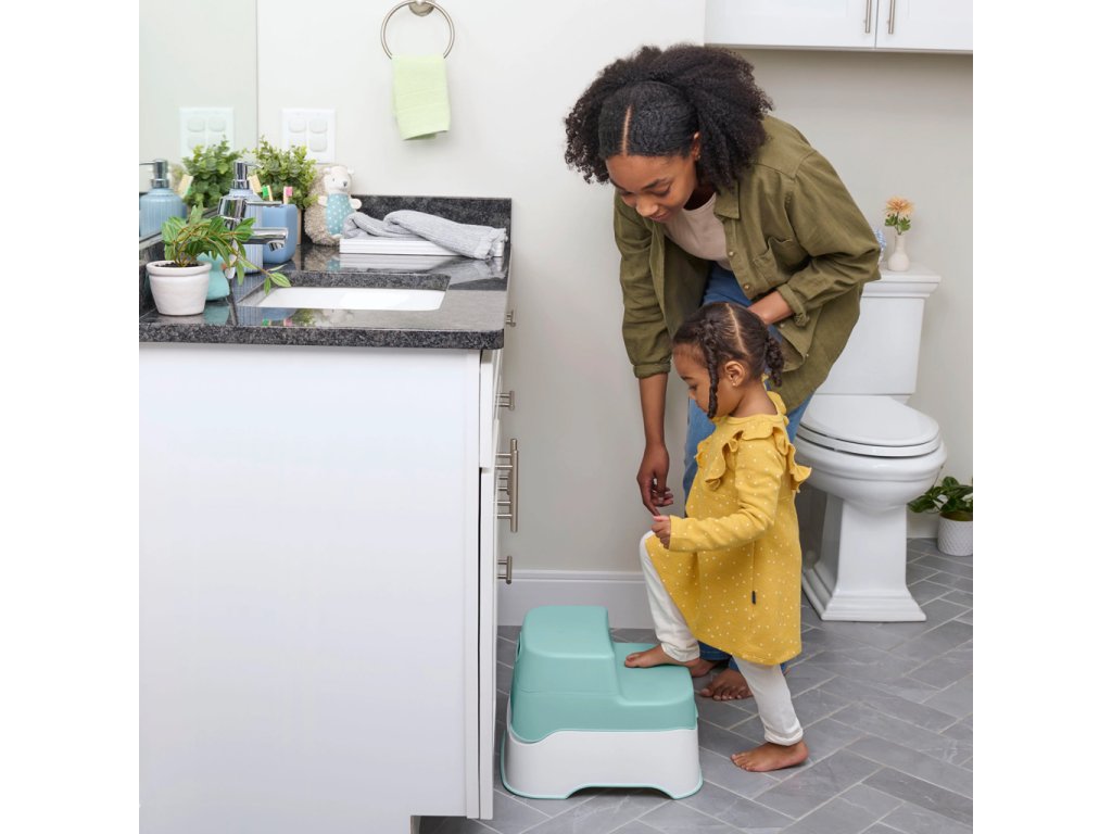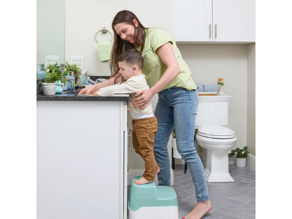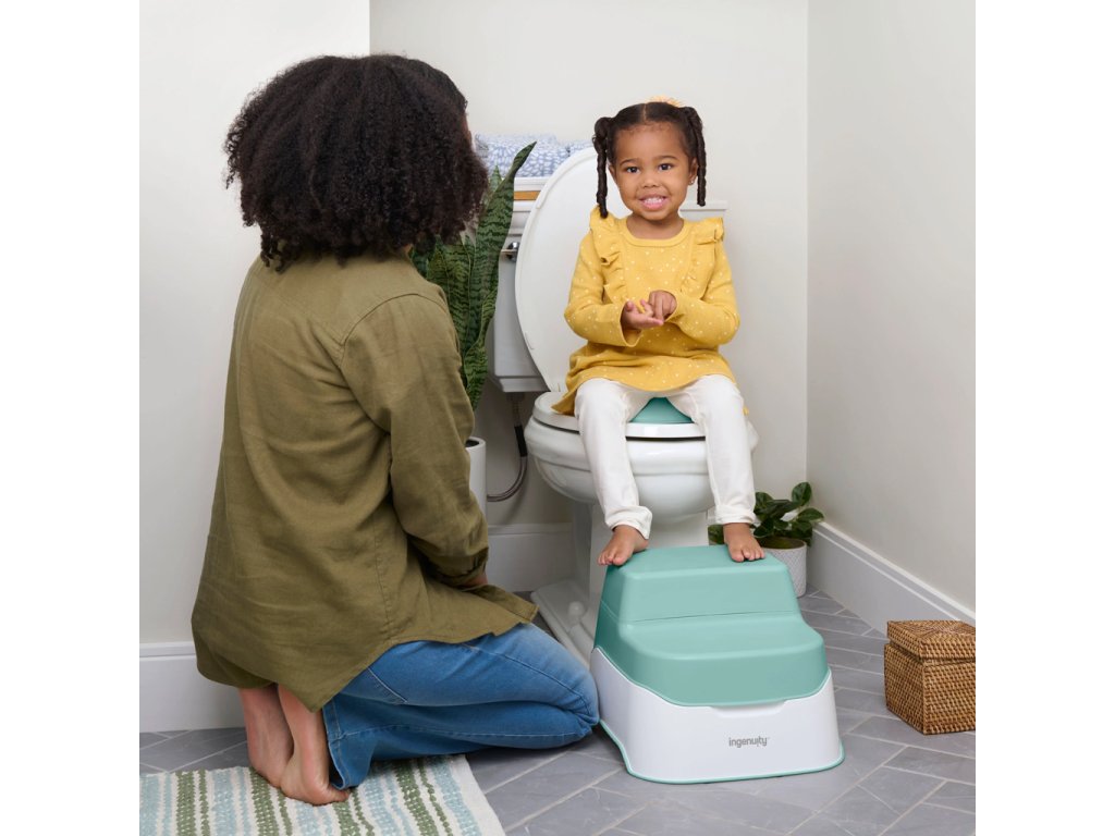 - Nakoniec, keď je váš drobec pripravený, zatvorte veko, aby sa tento nočník zmenil na dvojitý stupienok, ktorý pomôže vášmu dieťaťu dosiahnuť akékoľvek štandardné WC a umývadlo pre dospelých.