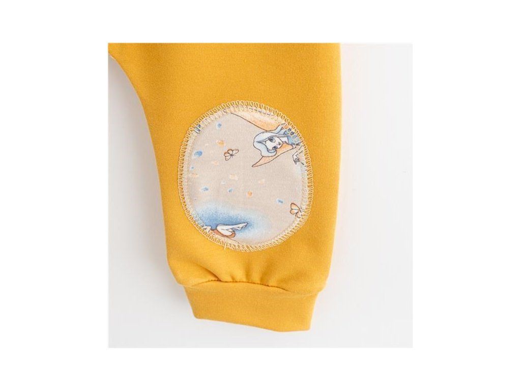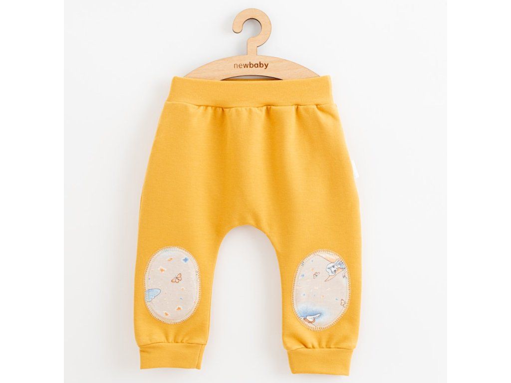 Moderné a praktické tepláčky New Baby Víla. Tepláčky majú v páse širší lem s gumičkou, na nohavičkách širší lem a na kolienkach šmrncovné záplaty s potlačou víl. Komfort pri nosení zabezpečí kvalitný materiál. Zloženie: 95% bavlna, 5% elastan. Do kolekcie Víla patria: tričko s krátkym rukávom, body s dlhým rukávom, polodupačky, tepláky, čiapočka a kraťasy.Dodatočné parametre