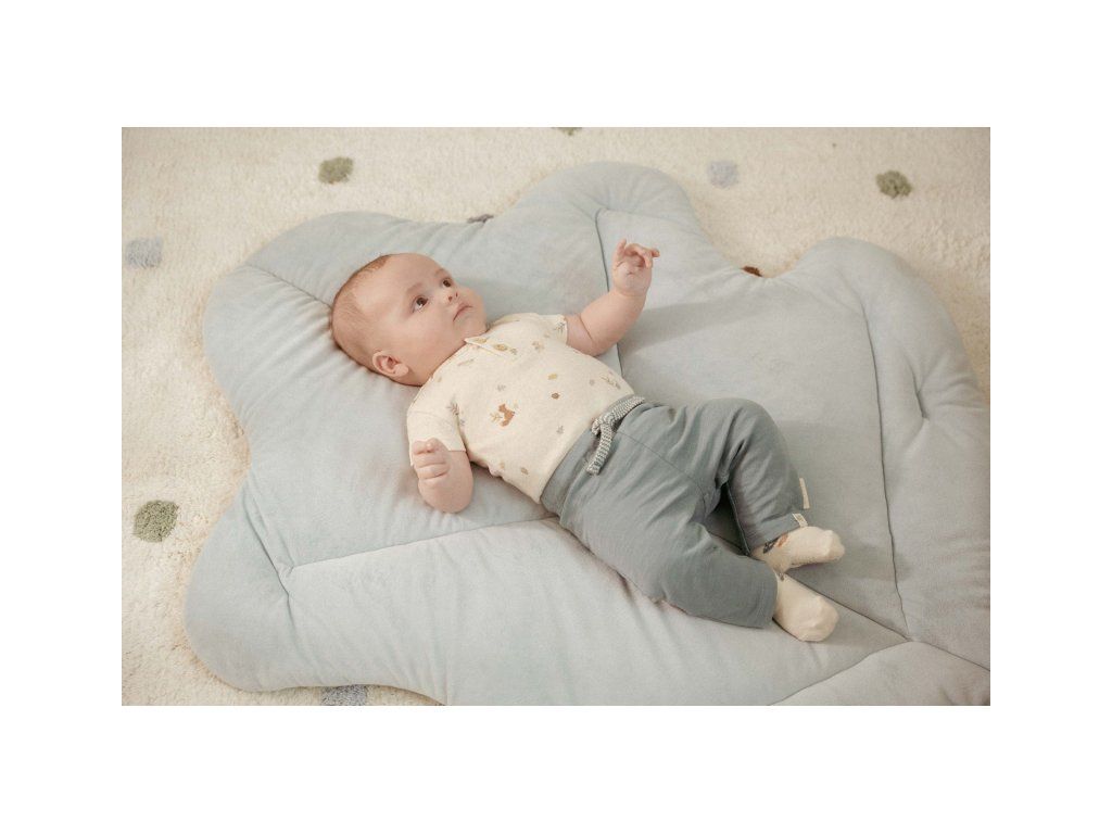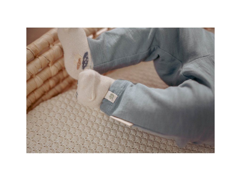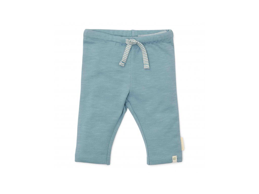 Nohavice z jemnej organickej bavlny s dekoratívnou šnúrkou majú elastický pás pre ľahké obliekanie dieťaťa.