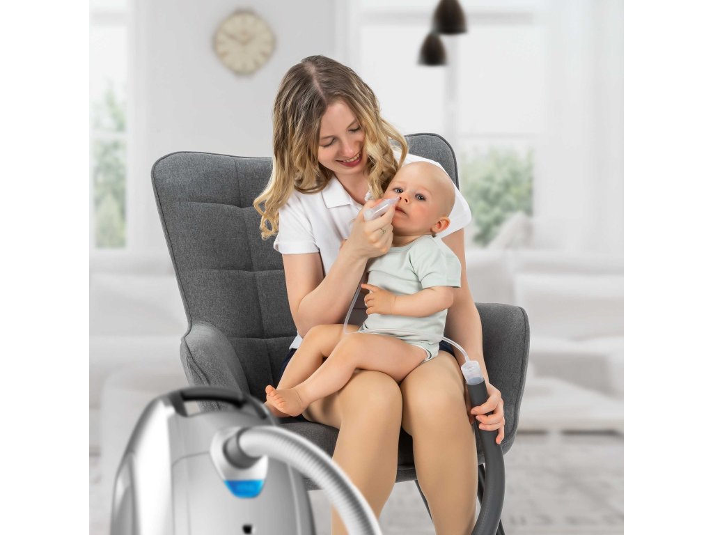 Novorodenci často bojujú s upchatým nosom, najmä v prvých mesiacoch života. Pokiaľ sa bábätku ťažko dýcha, ovplyvňuje to kvalitu spánku alebo stravovacie návyky. Môžu sa ale objaviť aj ochorenia uší, vedľajších nosových dutín alebo dýchacích ciest. S nosnou odsávačkou s nástavcom na vysávač ľahko a šetrne odstránite bábätku nahromadený sekrét z nosa a uľahčíte mu dýchanie, spánok a jedenie.