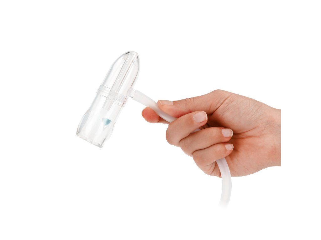 3. Proces odsávania a vyrovnanie tlaku Podtlak, ktorý odsáva sekréty z nosa, sa vytvorí stláčaním a uvoľňovaním ručnej pumpy/páčky. |