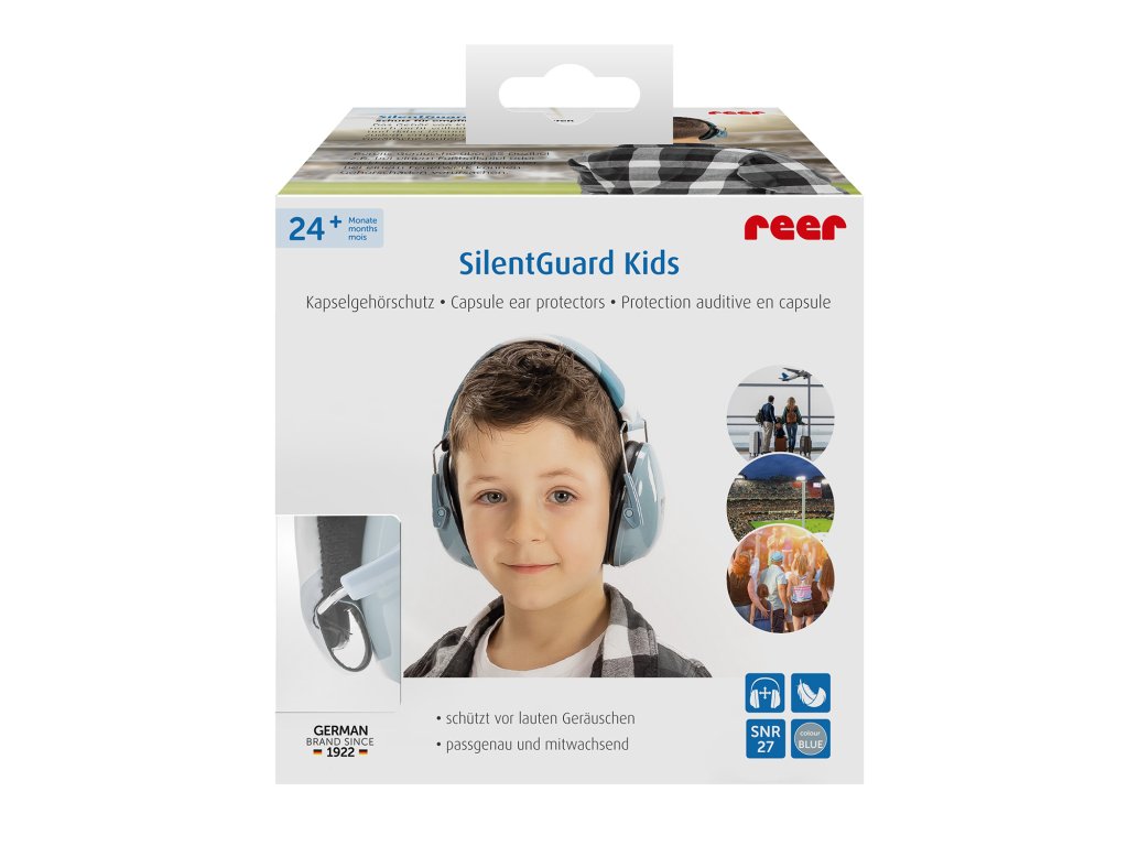 Sortiment produktov SilentGuard zahŕňa chrániče sluchu pre deti od 12 mesiacov veku a deti až do školského veku. bábätiek (12-24 mesiacov), SilentGuard Kids je obzvlášť vhodný pre deti vo veku 24 mesiacov a staršie, ktoré rastú spolu s nimi. Oba modely sú dostupné v modrej a ružovej farbe. perfektný strih, ktorý rastie s dieťaťom
