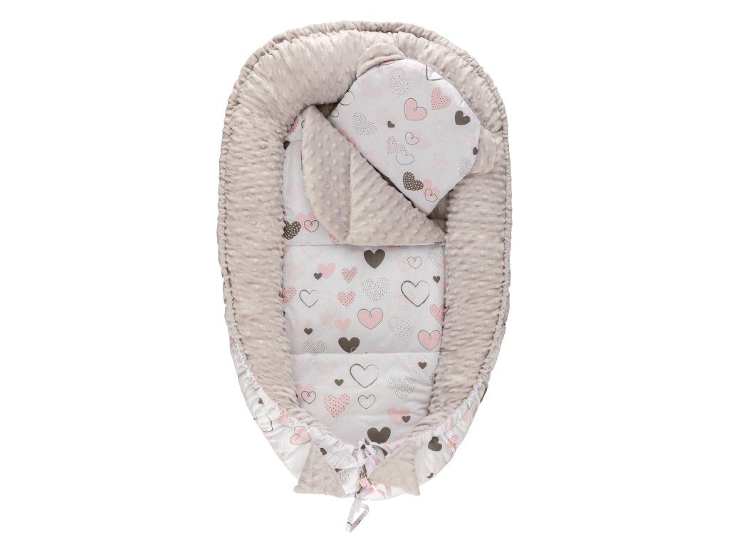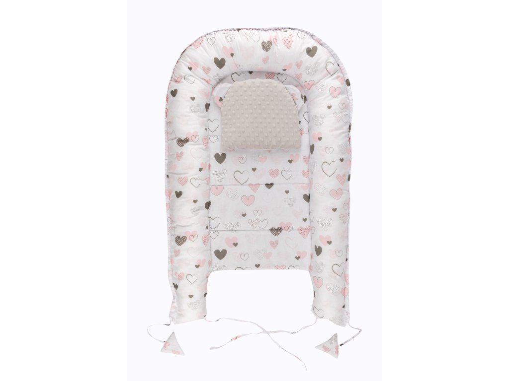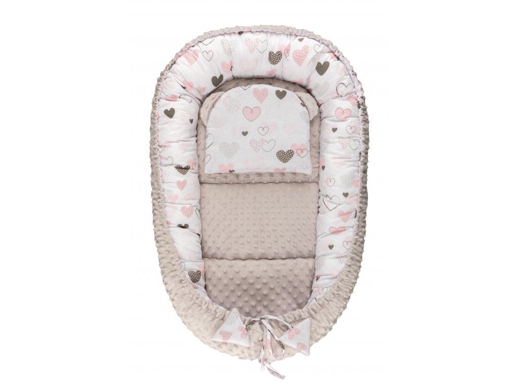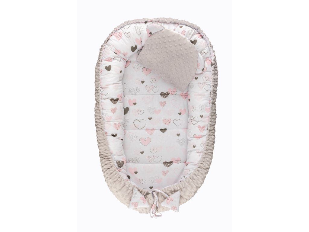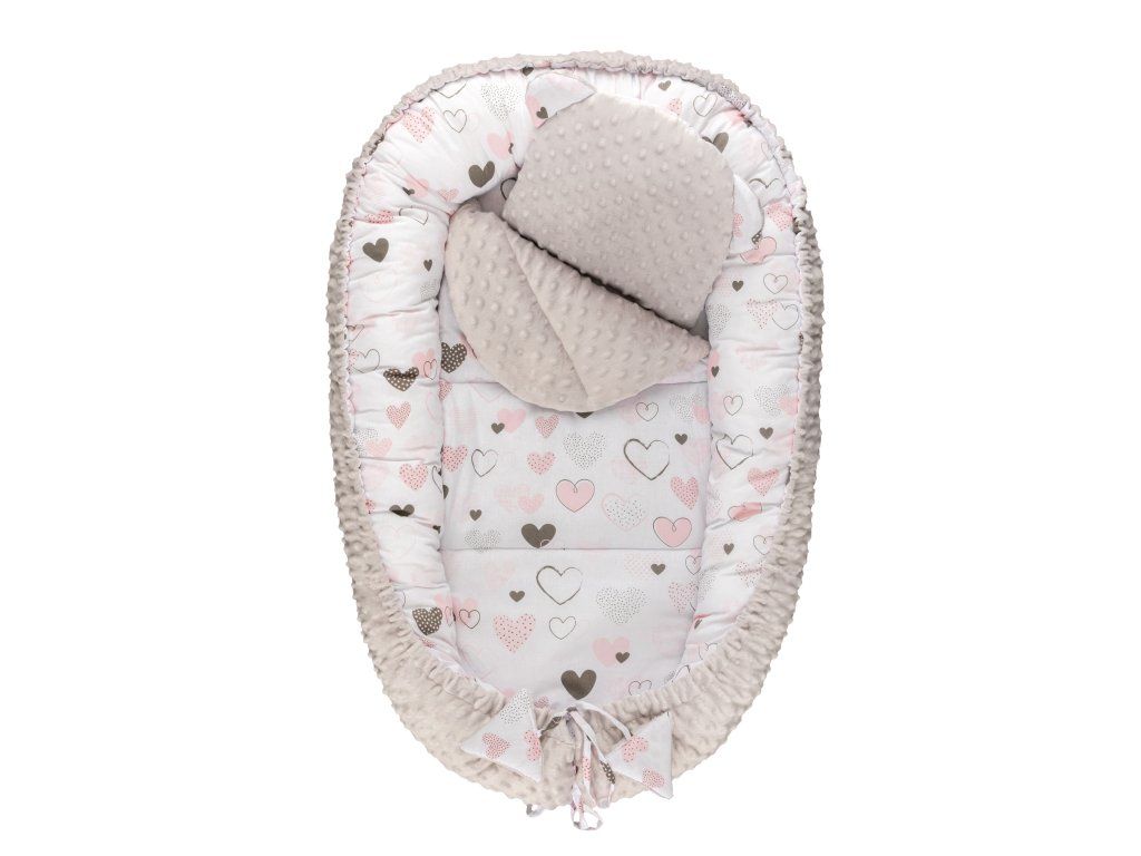 Bomimi HARMO Hniezdočko pre bábätko s vankúšom minky, SRDCIA sivá