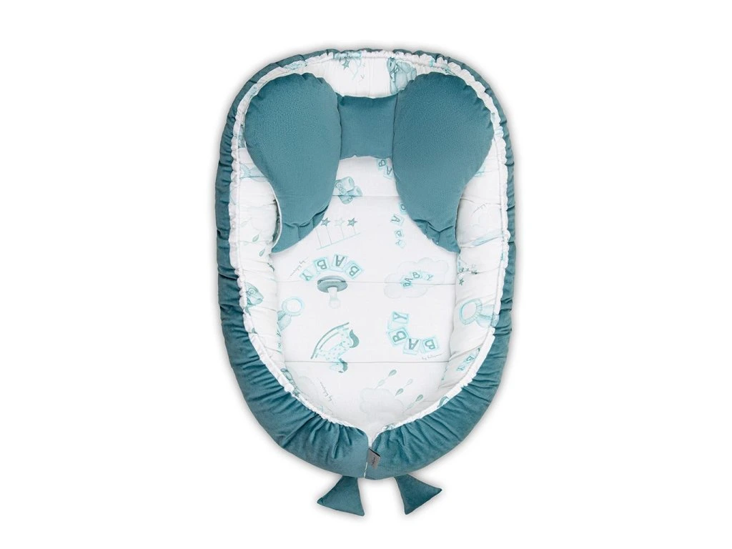 Hniezdo pre bábätká Velvet Belisima Baby Boy. Navodzuje bábätkám pocit bezpečia, kopíruje tvar maminho tela a dieťatko sa tak cíti spokojne ako u mamičky v brušku. Súčasťou hniezda je aj stabilizačný vankúšik. Zloženie: 100% bavlna, spodná časť 100% polyester, výplň: 100% polyester. Rozmery: cca 55x75 cm, vnútorné rozmery: cca 35x59 cm.Dodatočné parametre