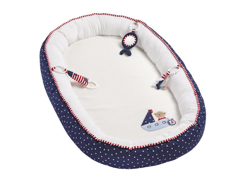 Plyšové hniezdočko z kolekcie Ocean Club s povrchom na ležanie vyrobeným z extra mäkkých materiálov priamo nabáda k maznaniu, spánku a hre. Vďaka obzvlášť mäkkému a polstrovanému okraju je v ňom dieťatko rozmaznávané pohodlím navodzujúcim pocit ochrany a bezpečia. Pritom na dosah ruky má tri odnímateľné hračky podporujúce zvedavosť dieťaťa a starajúce sa o jeho zábavu pri hraní. Ich súčasťou je hrkálka, zvrásnený papier a zrkadlo, ktoré prispievajú k tréningu motoriky. Mäkké hryzátko potom pomáha vo fáze hryzenia.
