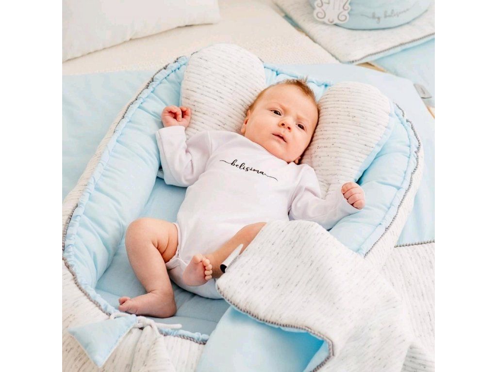 Hniezdo s perinkou pre bábätká Belisima Enzo. Navodzuje bábätkám pocit bezpečia, kopíruje tvar maminho tela a dieťatko sa tak cíti spokojne ako u mamičky v brušku. Súčasťou hniezda je aj stabilizačný vankúšik a perinka. Zloženie: vrchná strana 100% bavlna, spodná strana: 50% polyester, 50% bavlna, výplň: 100% polyester. Rozmery: cca 55x75 cm, vnútorné rozmery: cca 35x59 cm. Perinka: rozmery: 70x50 cm. Zloženie: vrchná strana 100% bavlna, spodná strana: 50% polyester, 50% bavlna, výplň: 100% polyester.Dodatočné parametre