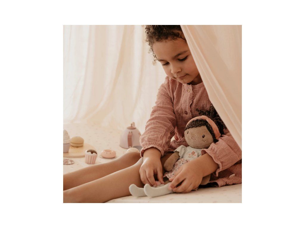 Nežná plyšová bábika Evi z mäkkého jemného materiálu je oblečená do krásnych kvetovaných šiat. Je vhodná na hranie aj maznanie a bude sa s ňou aj krásne zaspávať!