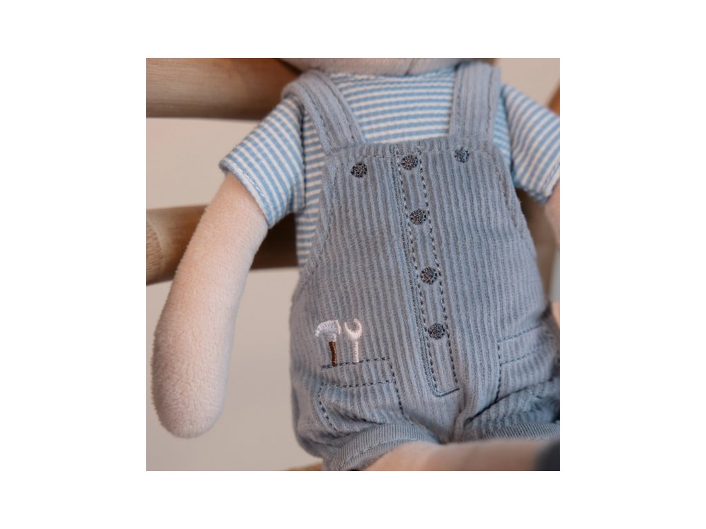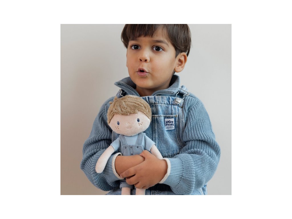 Originálna plyšová bábika v podobe chlapčeka Jima v menčestrových nohaviciach s trakmi. Bábika z mäkkého jemného materiálu je ideálna ako prvá bábika pre vaše dieťa, je vhodná na hranie aj maznanie a bude sa s ňou aj krásne zaspávať!