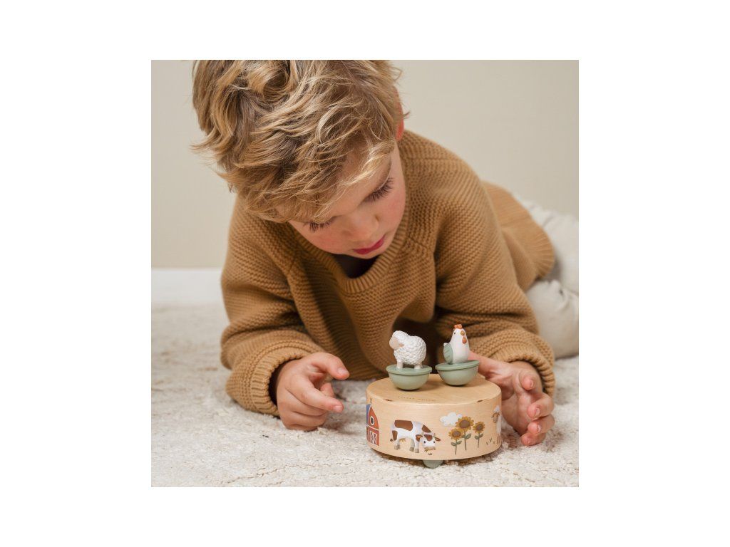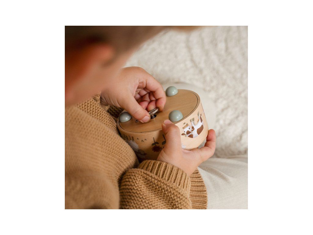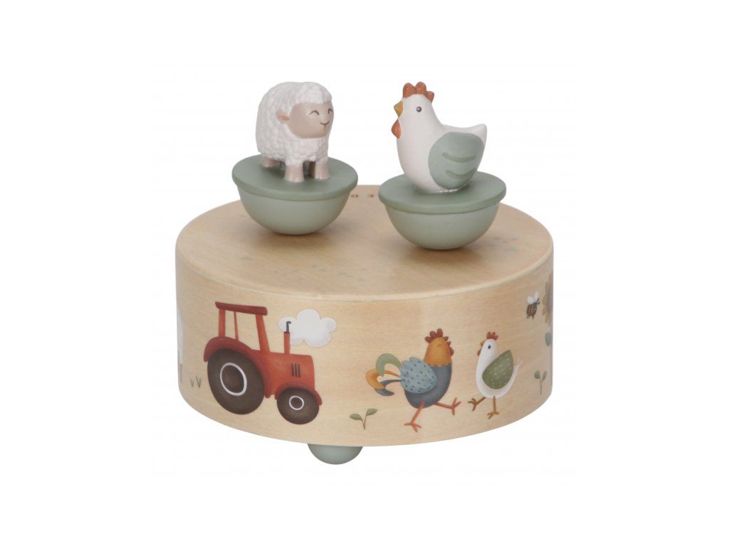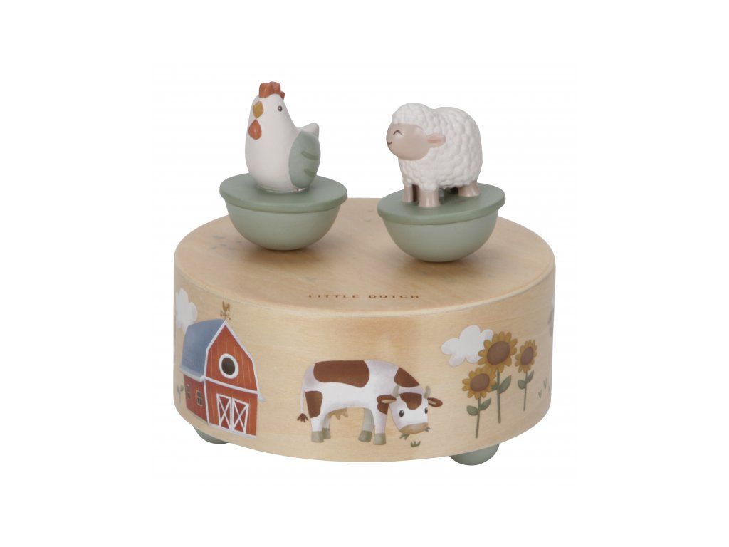 Hudobný box je súčasťou dizajnovej kolekcie Little Dutch Farma, v ktorej nájdete dekoratívne doplnky do detskej izby, posteľnú bielizeň, drevené a plyšové hračky aj jedálenské doplnky pre detské stolovanie.