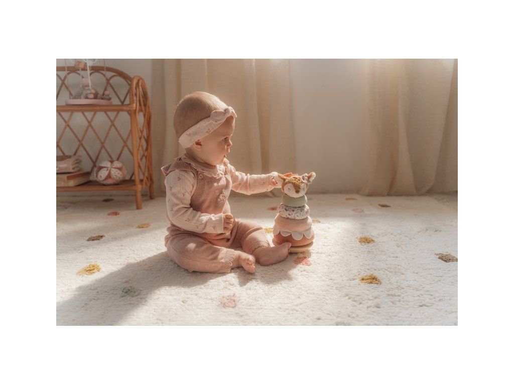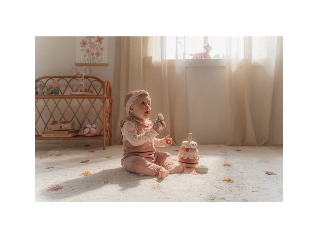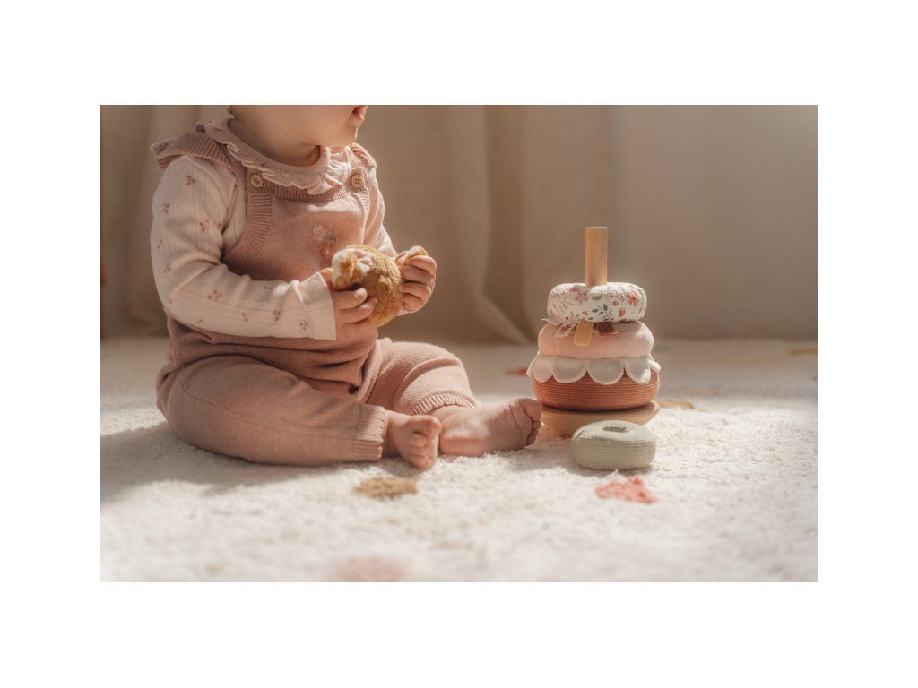 Plyšové nasadzovacie krúžky pre deti sú navrhnuté tak, aby rozvíjali ich koordináciu rúk a očí zábavnou a praktickou hrou. Deti sa snažia umiestniť krúžky v správnom poradí a vytvoriť z nich pyramídu. To je celkom výzva, pretože pyramída má drevenú pologuľatú základňu a tak sa kýve na všetky strany!