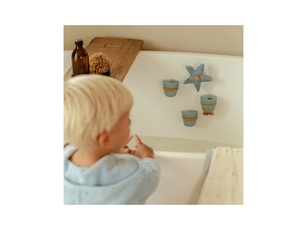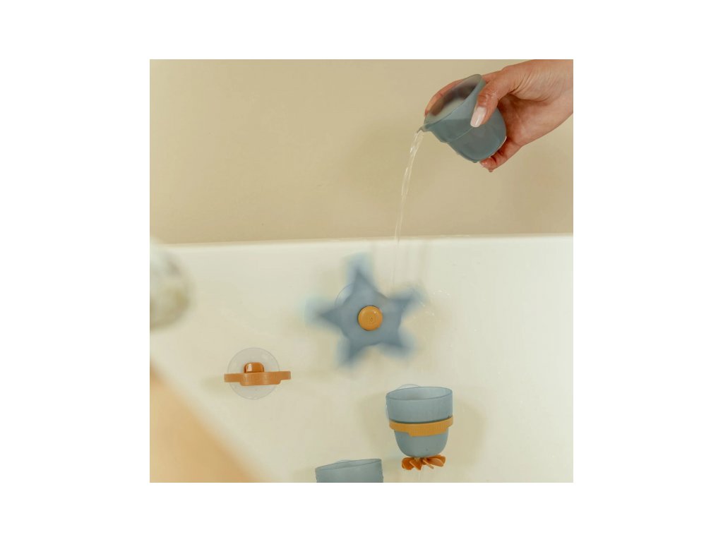 Premeňte kúpanie na radostnú hru so sadou téglikov Little Dutch! Tento hravý set obsahuje vodný mlynček v tvare hviezdice, dva tégliky a nalievací hrnček, ktoré možno pomocou prísaviek ľahko pripevniť na stenu vane alebo sprchy. Stačí naliať vodu na hviezdicu a sledovať, ako sa začne točiť - deti si pritom precvičujú koordináciu, objavujú zákonitosti pohybu vody a rozvíjajú jemnú motoriku. Jemné farby a premyslený dizajn hračky robia z kúpania príjemný rituál plný fantázie a objavovania.