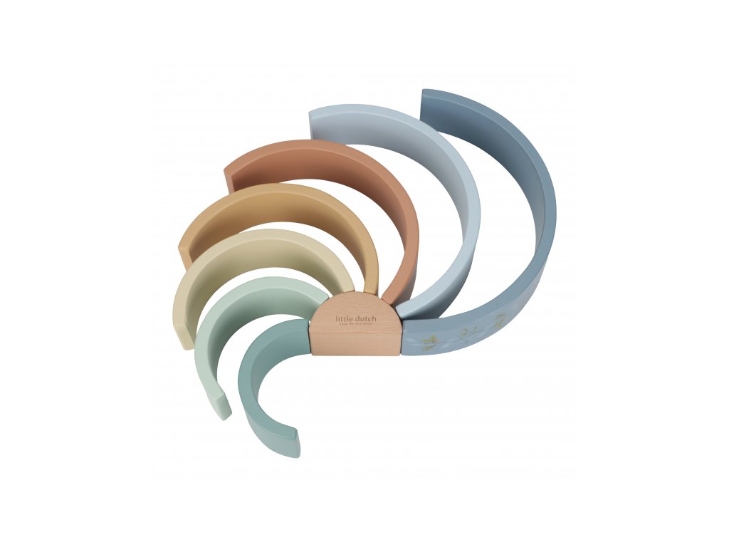 Preneste dúhu z oblohy do detskej izby! Krásna drevená skladačka v tvare dúhy umožní deťom používať svoju predstavivosť na vytváranie rôznych tvarov. Dokáže s jej pomocou postaviť napríklad železničný tunel, domček pre malé bábiky alebo most pre autá. Možností je nekonečne veľa!