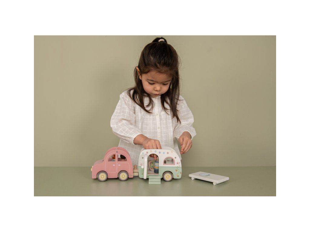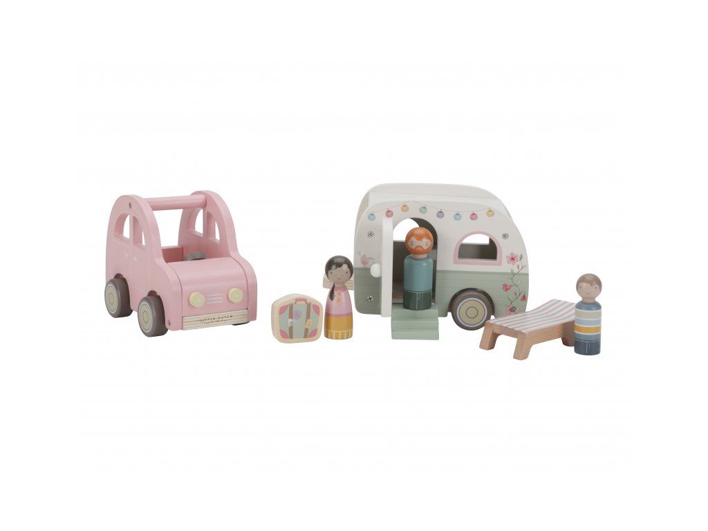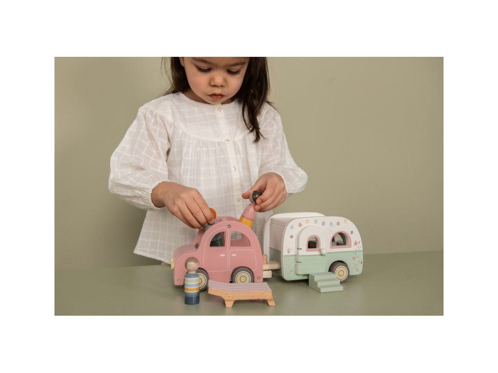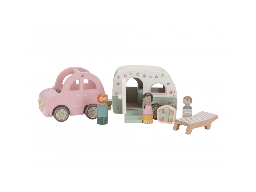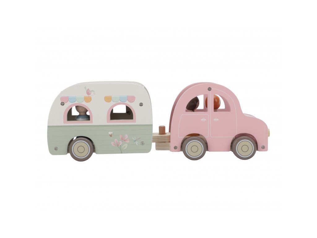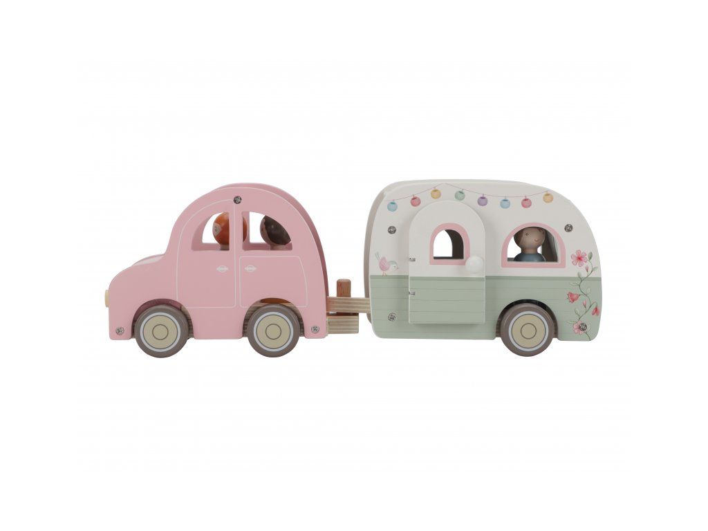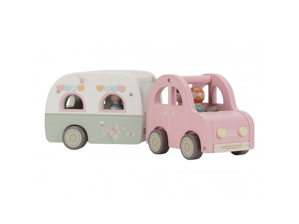 Rozkošné ružové auto s karavanom v kvalitnom drevenom prevedení dovezie celú rodinku za prázdninovým dobrodružstvom. Karavan má odnímateľnú strechu a otváracie dvere, aby bolo možné rodinku aj vybavenie dovnútra ľahko umiestniť.