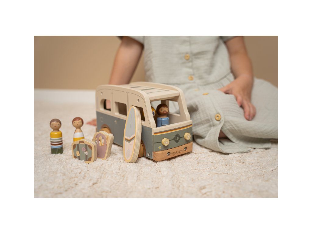 Karavan v kvalitnom drevenom prevedení má odnímateľnú strechu, aby bolo možné dovnútra posadiť celú rodinu, kufor a zásoby jedla na víkend. Surf sa pripevní na strechu a víkend pri mori môže začať!