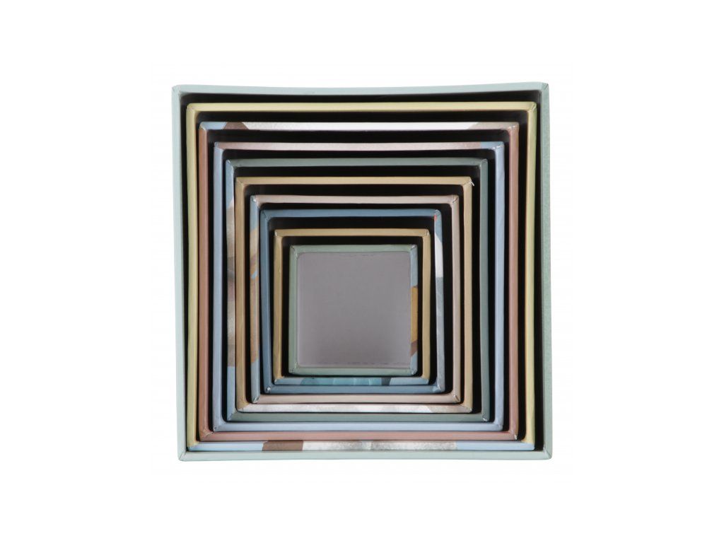 Najmenšia kocka má 5 cm a najväčšia má 14 cm. Po skončení hrania kocky ľahko uložíte zložením do seba.