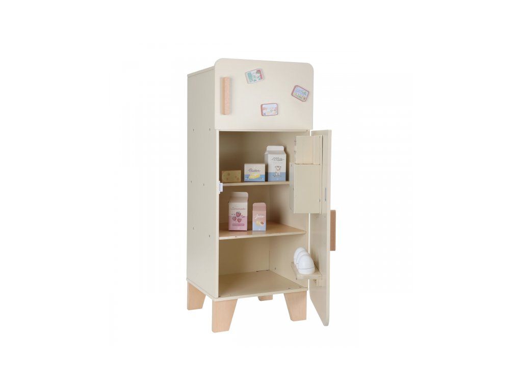 Krásna drevená chladnička Little Dutch s mrazničkou a výrobníkom ľadu bude skvelým doplnkom detskej hernej kuchyne, obchodu aj reštaurácie. Chladnička ponúka dostatok priestoru na uloženie potravín a obsahuje aj špeciálnu priehradku na vajíčka. Vďaka praktickému rozvrhnutiu vnútorného priestoru a pohyblivým prvkom sa deti zábavnou formou učia o skladovaní potravín a fungovaní domácnosti.