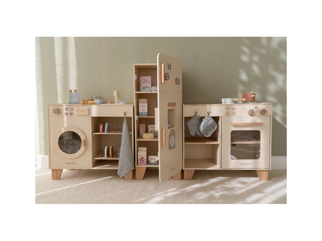 Chladnička je skvelým doplnkom k detskej kuchynke a práčke z kolekcie drevených hračiek Little Dutch. Môžete tak vytvoriť plne vybavenú hernú kuchyňu, ktorú je možné ďalej vybaviť ďalšími drevenými hračkami Little Dutch, napr. kávovarom, sendvičovačom, kuchynskou váhou, krájacím ovocím, krájacou zeleninou, čajovým servisom a pod.