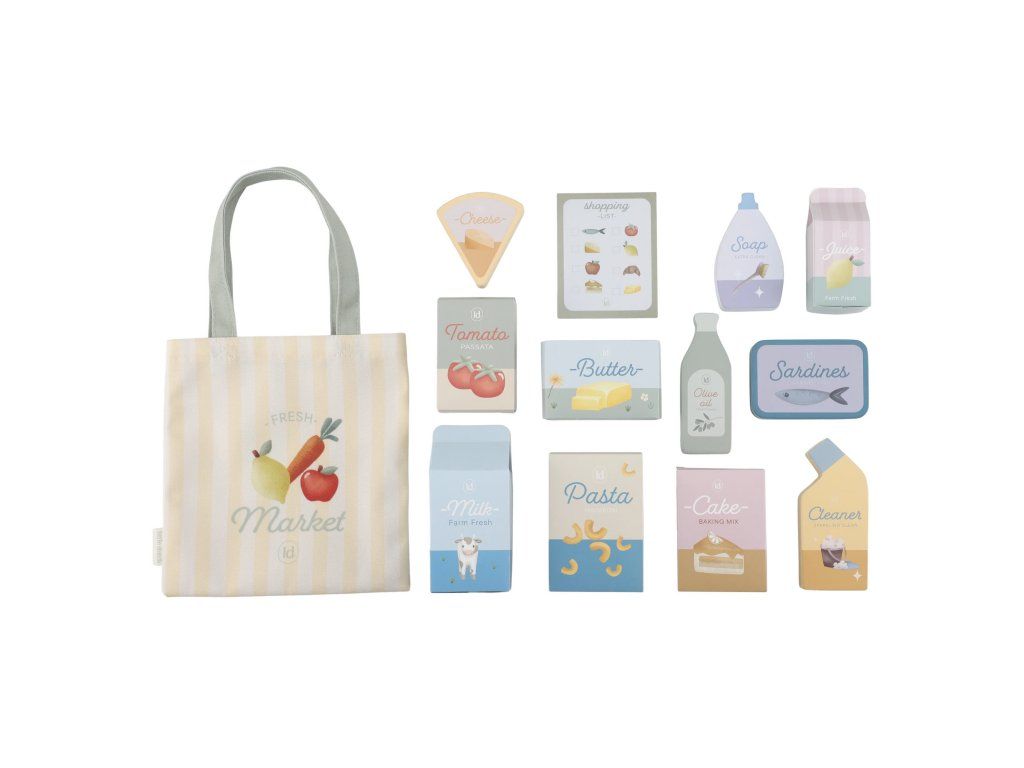 Súčasťou sady je látková nákupná taška, drevené potraviny a kartónové krabičky. Praktický drevený klip pomôže uchytiť nákupný zoznam, aby sa na nič nezabudlo. Veselá ilustrácia na prednej strane vozíka dodáva celej hre ešte viac radosti.