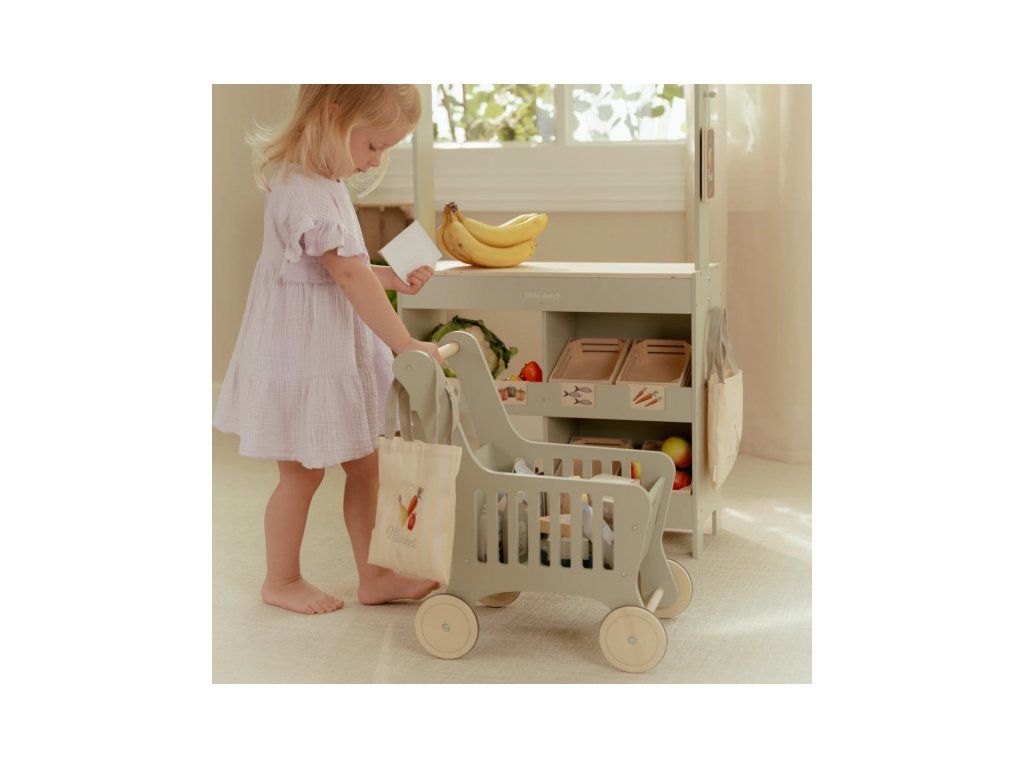 Nakupovanie je zábava! Tento krásne spracovaný drevený nákupný vozík Little Dutch je ako stvorený pre malých nakupujúcich s veľkou fantáziou. Či už vyráža do supermarketu, na rušný trh alebo na nákup plyšovým kamarátom, s týmto vozíkom bude každá hra ešte zábavnejšia.