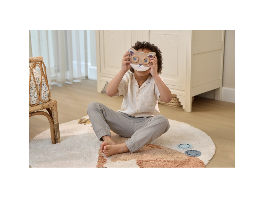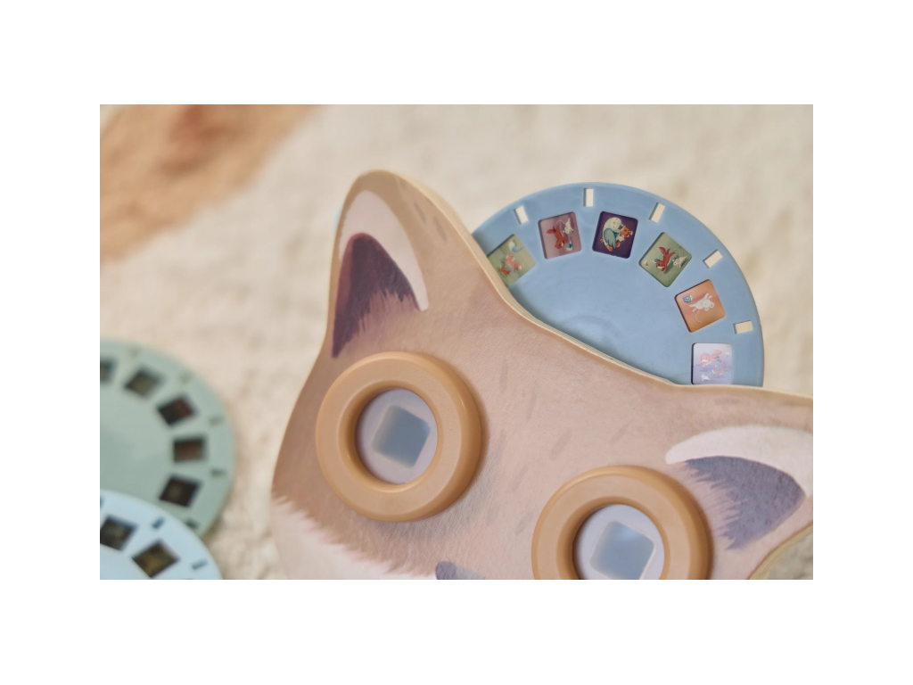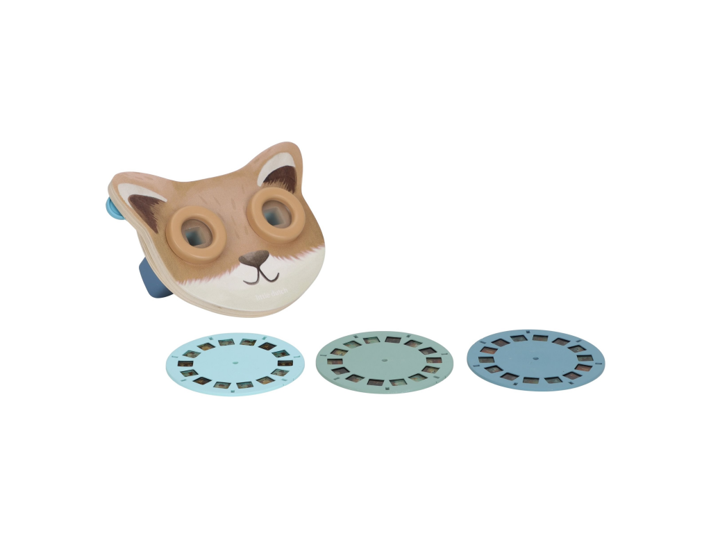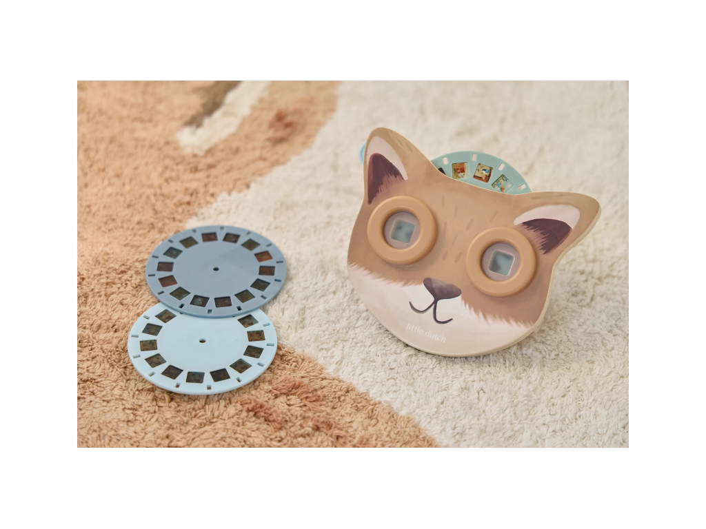 Prohlížeč příběhů Little Dutch je kouzelná hračka, která děti vtáhne do světa vyprávění a fantazie. Má podobu roztomilé lišky a funguje jednoduše: stačí otáčet kotoučky a před očima se odvíjejí obrázkové příběhy z lesa. Součástí jsou tři výměnné kotouče s příběhy kamarádů z lesa. Ideální pro klidné chvíle před spaním i společné vyprávění s rodiči. Hračka podporuje rozvoj řeči, představivost a schopnost tvořit vlastní příběhy.