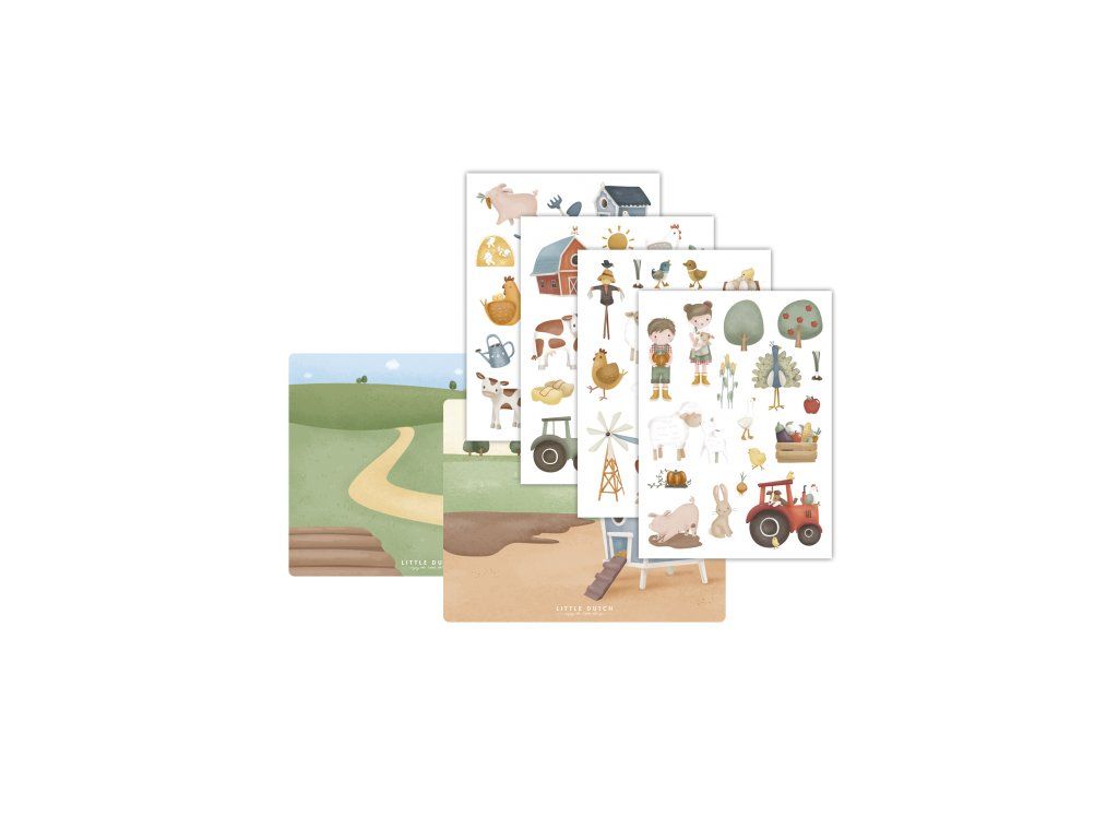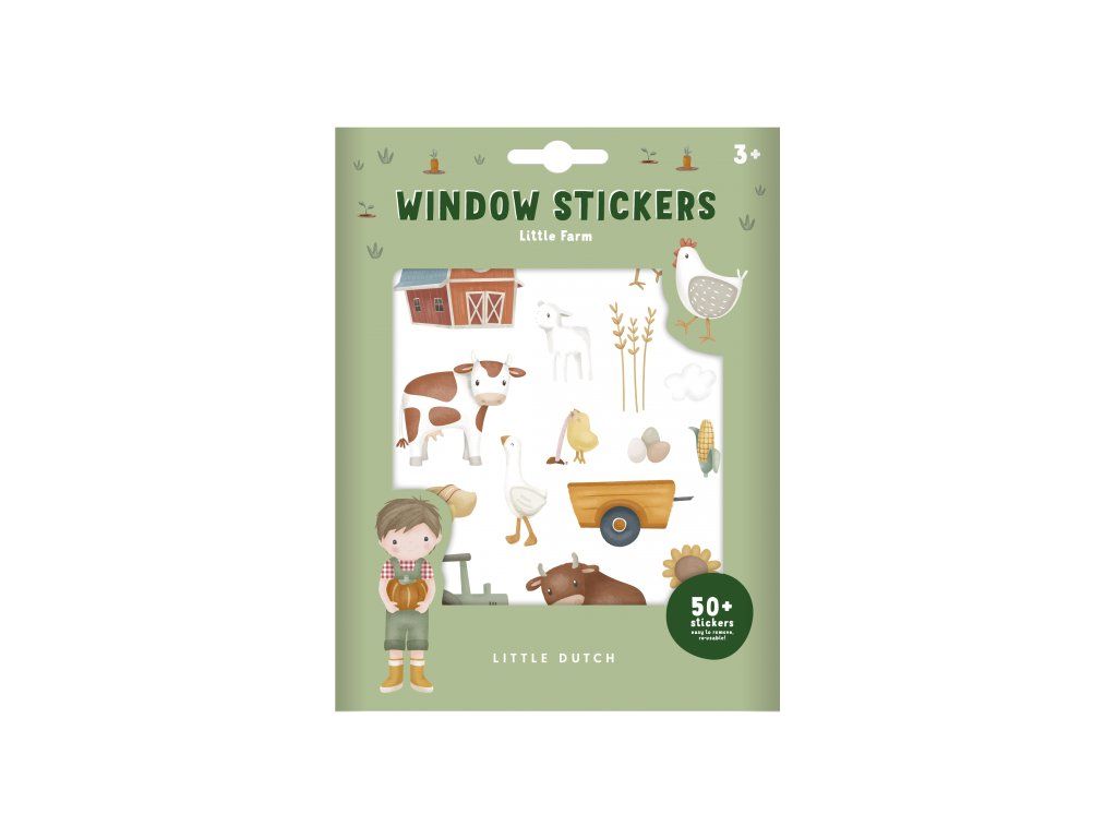 Snímateľné samolepky v podobe motívov zo života na farme z kolekcie Little Dutch Farma sú určené na použitie na okne, zrkadle či na priloženej papierovej štvrtke s natlačeným pozadím. Samolepky je možné ľahko odlepiť a použiť opakovane.