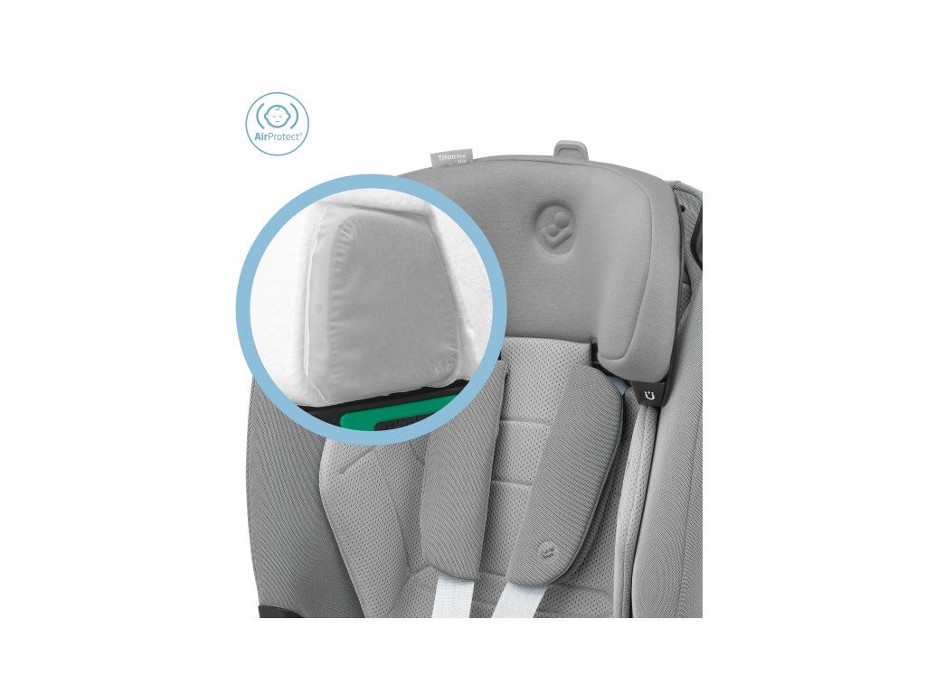 Autosedačka Maxi-Cosi Titan Pro i-Size je multi-veková autosedačka vhodná pre deti od 15 mesiacov do 12 rokov (od 76 do 150 cm). Autosedačka vyniká patentovanou technológiou proti bočnému nárazu, najmä v oblasti ramien a hlavy. Inovatívna plastová štruktúra technológie G-CELL pomáha výrazne znížiť vplyv v prípade bočného nárazu. Vďaka funkcii ClimaFlow zaistí dieťaťu maximálnu tepelnú pohodu na cestách.