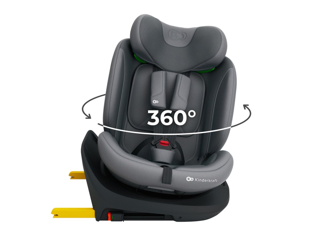 - Otočná báza EASY SPIN 360° – pohodlné otáčanie sedačky k dverám, ľahšie zapínanie pásov a zmena smeru jazdy.