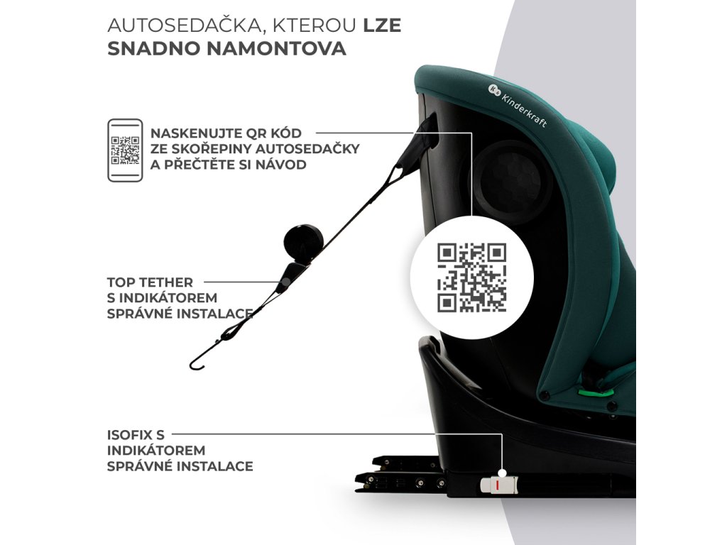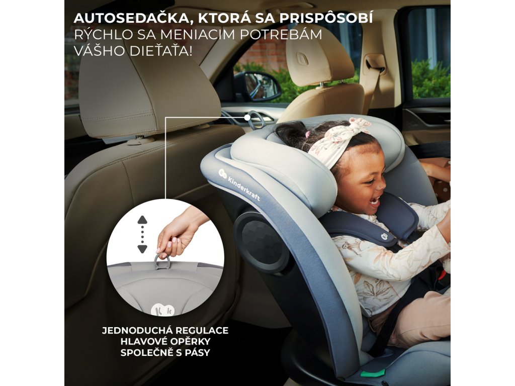 Detská autosedačka 40–150 cm I-GROW i-Size KinderkraftOtočná autosedačka I-GROW vás bude sprevádzať od narodenia dieťaťa až približne do 12 rokov (36 kg / 150 cm výšky). Okrem klasických prvkov, ako sú nastaviteľné 5-bodové vnútorné pásy a pevná škrupina, je vybavená aj množstvom dodatočných bezpečnostných systémov, ako napríklad H-GUARD a SPS+, a nechýbajú ani indikátory správneho upevnenia ISOFIX a TOP TETHER. Vďaka systému EASY SPIN 360° môžete autosedačku v priebehu chvíľky otočiť k sebe a dieťa pohodlne pripútať vnútornými pásmi.