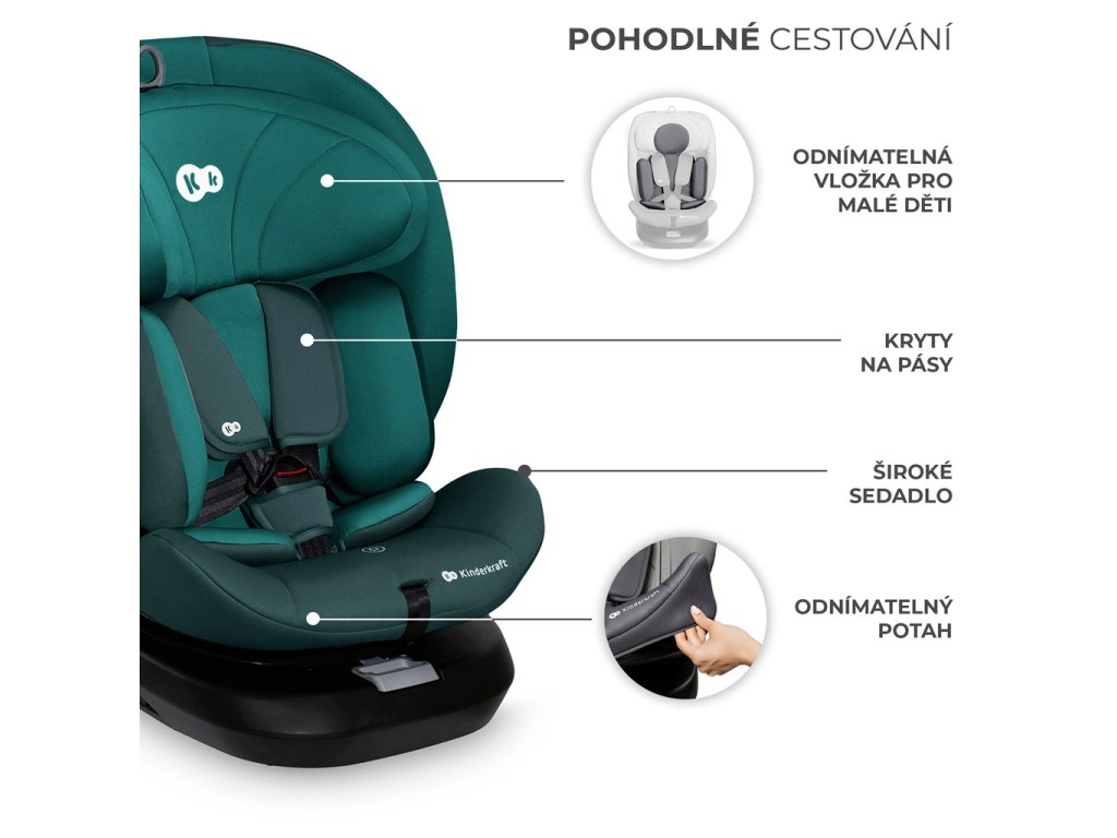 Autosedačka spĺňa aj očakávania rodičov – vnútorné 5-bodové pásy možno jednoducho skryť bez demontáže. Obsahuje aj modulárnu vložku z pamäťovej peny pre menšie deti, ktorá zvyšuje pohodlie a bezpečnosť. Poťah je odnímateľný a možno ho prať.