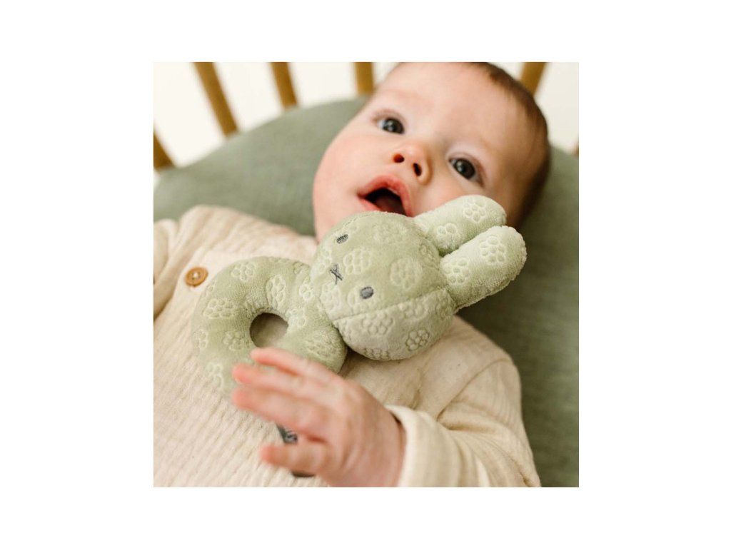 Rozkošná hrkálka s králikom z jemného plyšu je prispôsobené malým detským ručičkám. Hračka podporuje zmysly a zvedavosť dieťaťa a jeho jemnú motoriku.