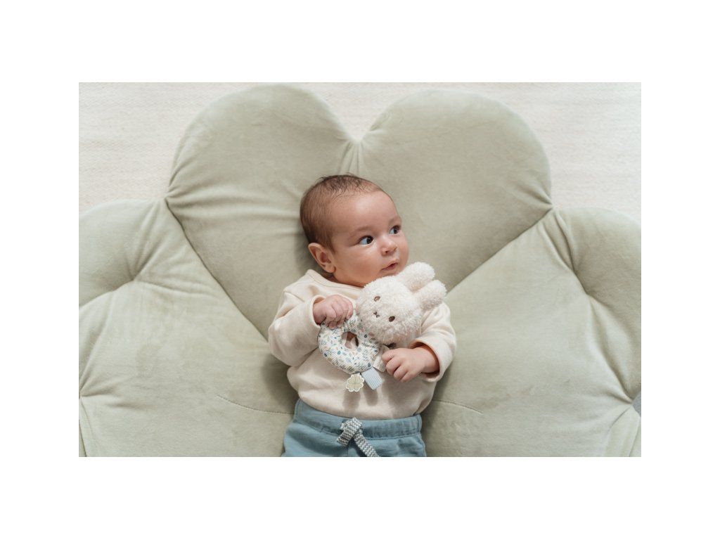 Rozkošná hrkálka s králikom z jemného plyšu a menčestru je prispôsobená malým detským ručičkám. Hračka podporuje zmysly a zvedavosť dieťaťa a jeho jemnú motoriku.