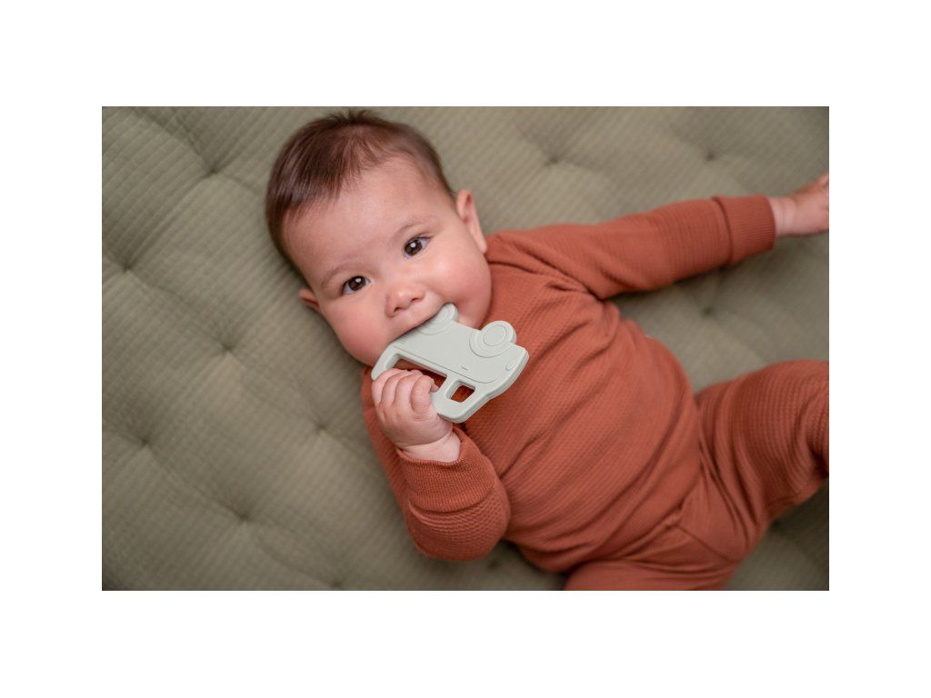 Mäkké silikónové hryzátko s rôznymi textúrami láka dieťa na skúmanie v ústach a pomáha tak pri prerezávaní prvých zúbkov. Hryzátko má tvar pre ľahké uchopenie detskými ručičkami.