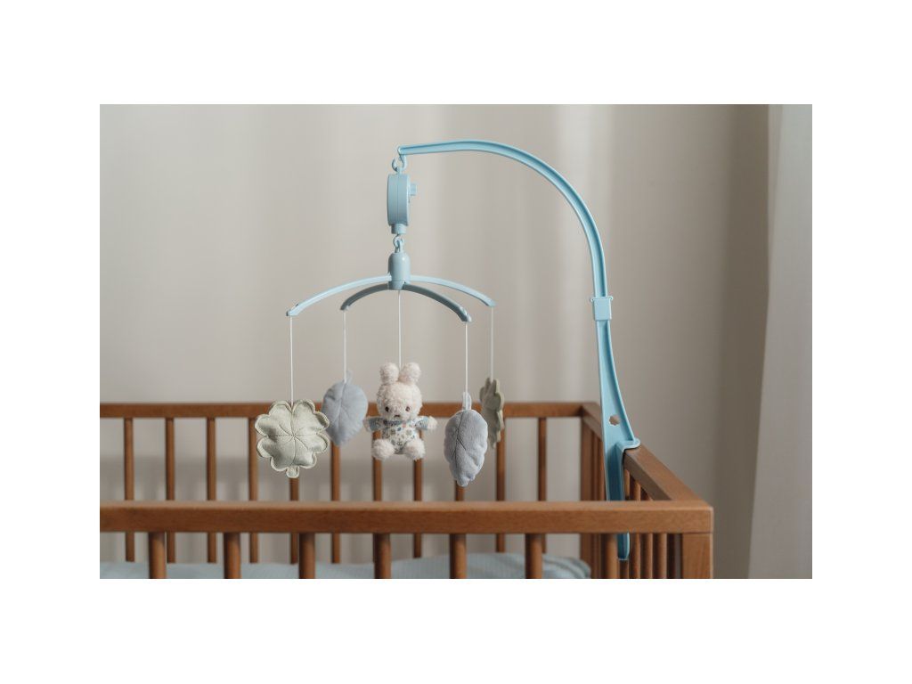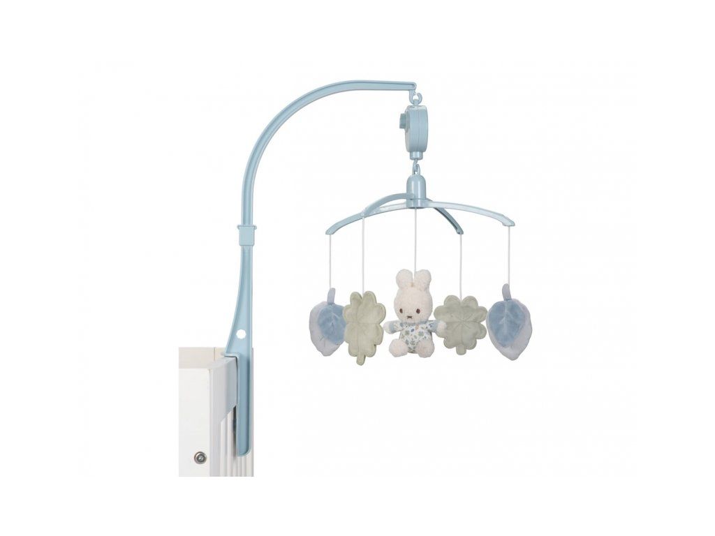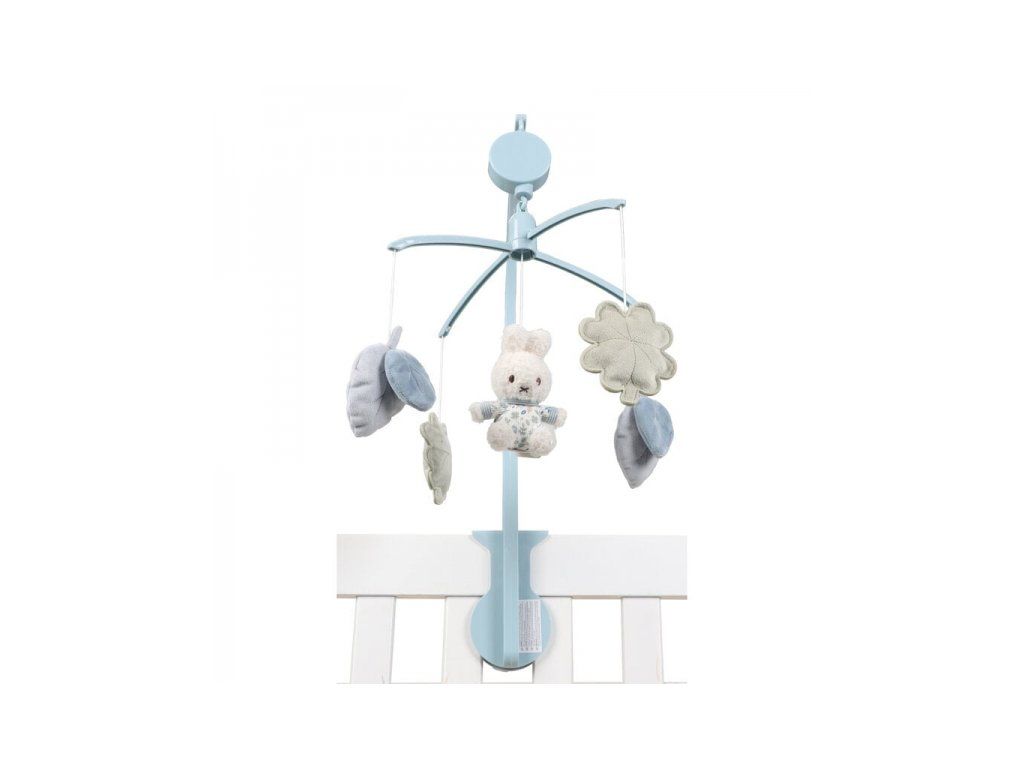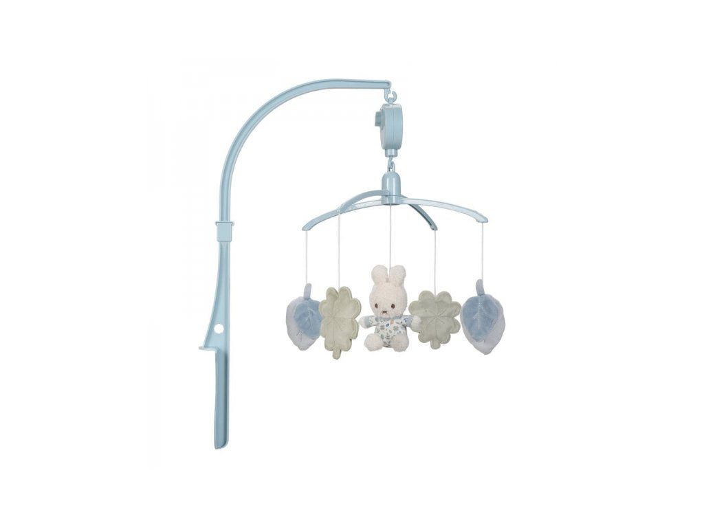 Kolotoč s naťahovacím hudobným boxom hrá nežnú uspávanku pre pokojné zaspávanie. Pozornosť dieťaťa upútajú otáčajúce sa plyšové hračky v podobe králička Miffy a listov rôznych tvarov v pastelových farbách. Kolotoč ľahko pripevníte na bočnicu postieľky.