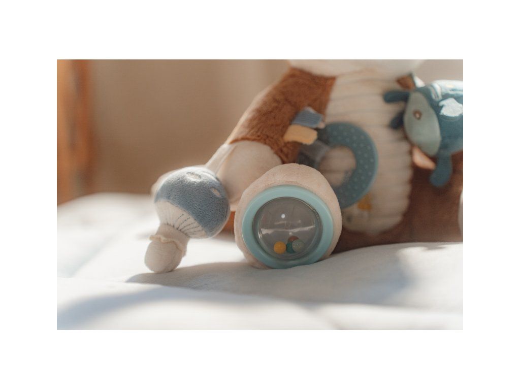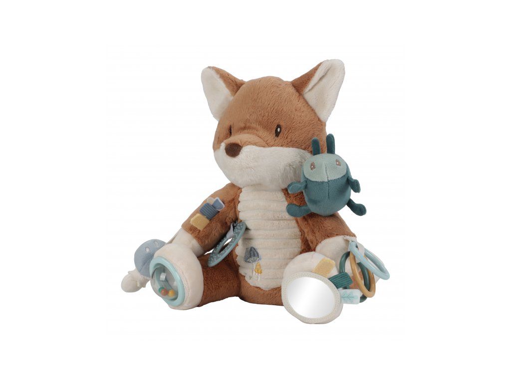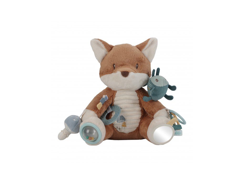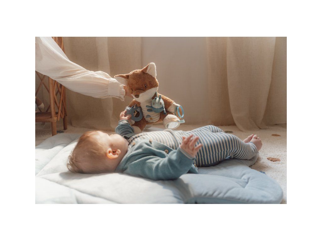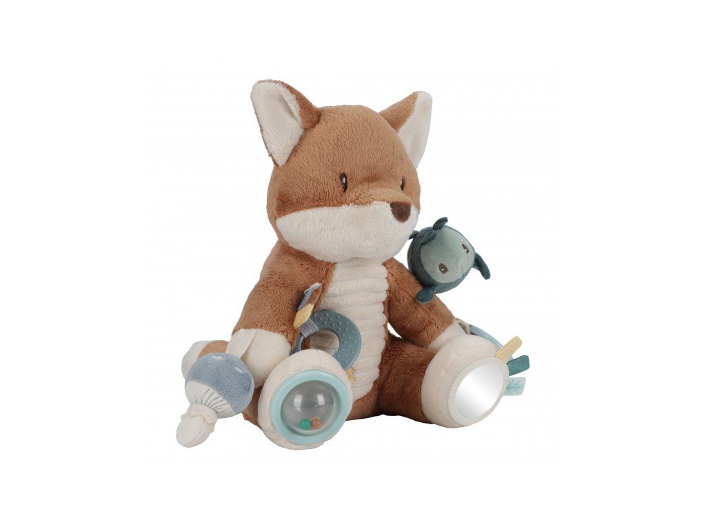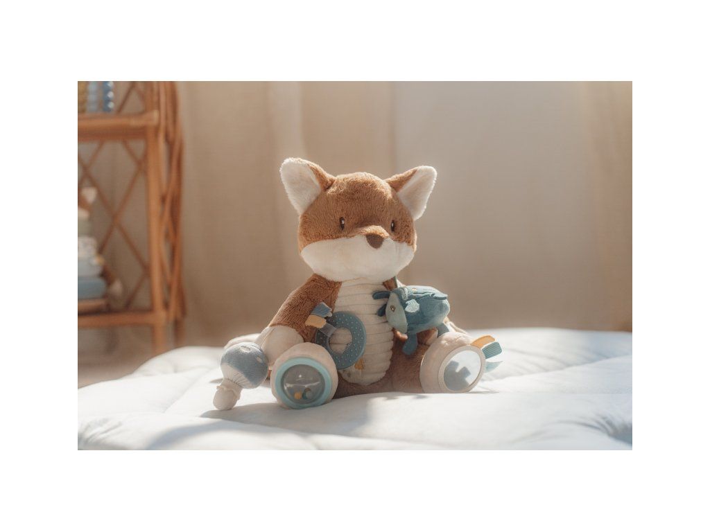Plyšová hračka v podobe rozkošnej líšky láka na hranie a skúmanie. Líška je vyrobená z veľmi jemného a príjemného materiálu, pri pohybe hrká a ponúka rôznorodé aktivity na skúmanie. Hračka dieťa zabaví a môže slúžiť aj ako kamarát do postieľky pre pokojné zaspávanie.