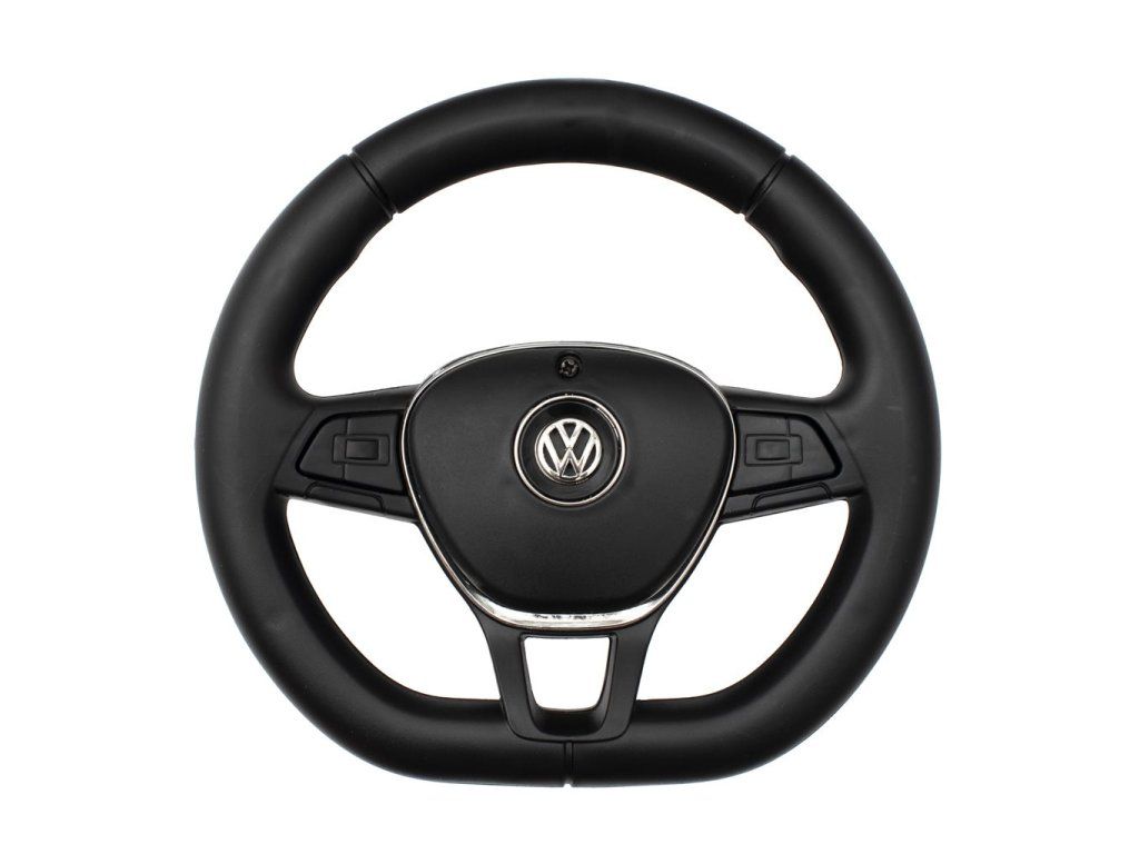 - Trojramenný volant s logom VW, vybavený klaksónom a veselými melódiami