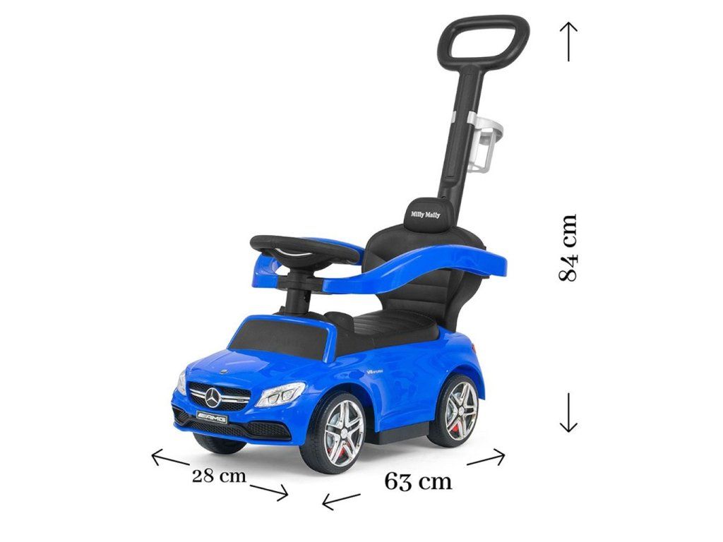 Detské odrážadlo s vodiacou tyčou Mercedes Benz AMG C63 Coupe je vyrobené z kvalitného plastového materiálu.S autíčkom si deti užijú veľa zábavy pretože má nenapodobiteľný vzhľad skutočného Mercedesu, komfortné široké sedadlo s úložným priestorom, volant, kvalitné plastové kolesá a pohodlnú a zároveň pevnú vodiacu tyč s držiakom na nápoje, s ktorou je možné riadiť autíčko. Vodiaca tyč, opierky na ruky a podnožky je možné zložiť, a tým dieťa využije autíčko ako klasické odrážadlo. Batérie nie sú súčasťou balenia (2x AA 1.5V).