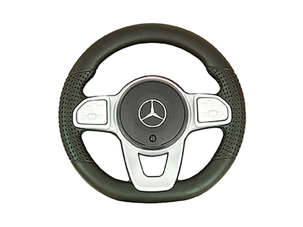 - Trojramenný volant s logom MERCEDES, vybavený klaksónom s veselými melódiami a zvukom motora