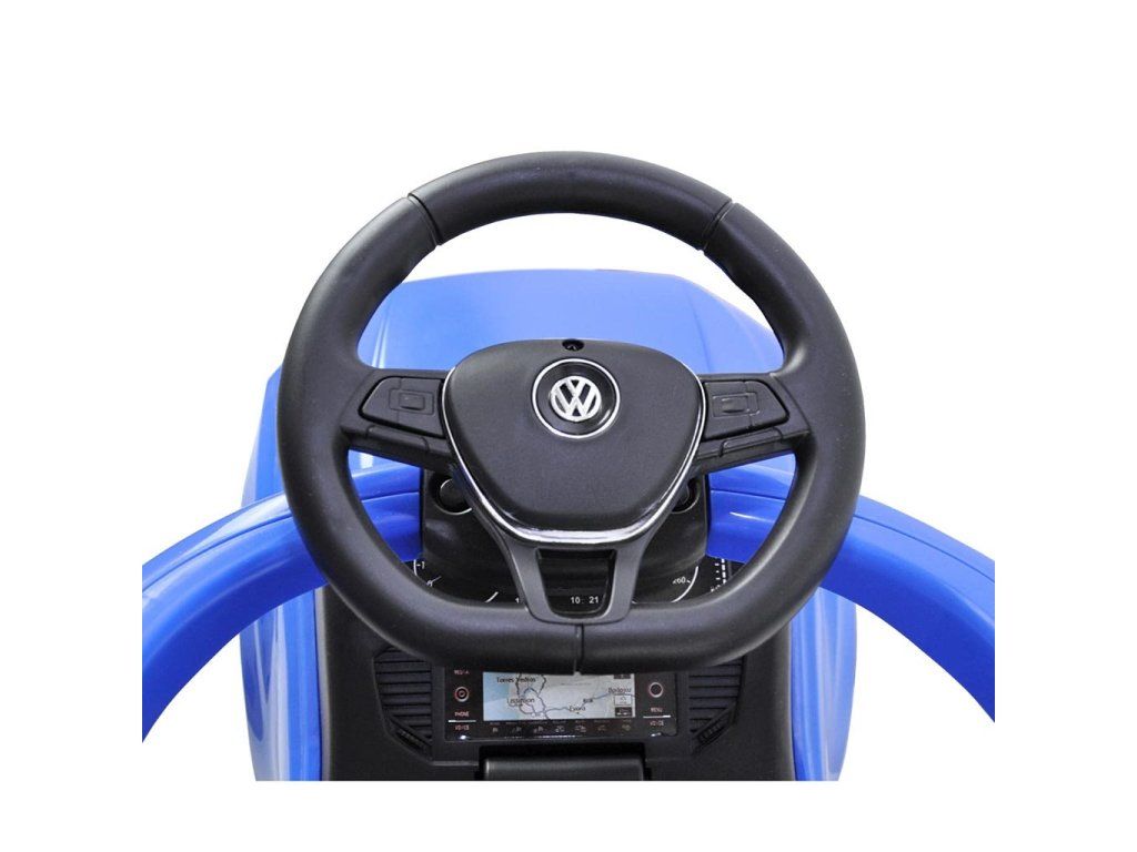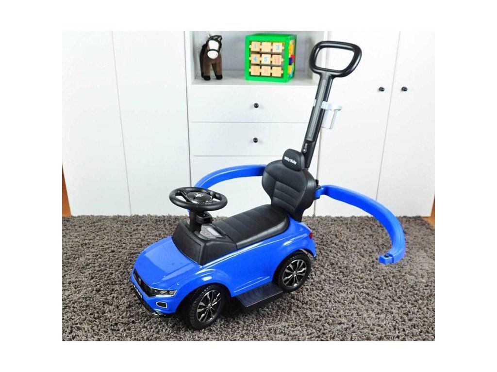 Detské odrážadlo s vodiacou tyčou VOLKSWAGEN T-ROC je vyrobené v licencii koncernu Volkswagen. Jeho športový vzhľad upúta pozornosť nielen každé dieťaťa, ale aj rodičov. Váš malý pretekár či pretekárka sa v ňom bude cítiť ako v naozajstnom aute. Odrážadlo je vyrobené s dôrazom na každý detail a kvalitu použitých materiálov. Odrážadlo pomáha rozvíjať motorické schopnosti dieťaťa a zaručí mu veľa zábavy a srandy. Autíčko má na volante efektnú húkačku a tlačidlá s melódiami. Je určené ako pre najmenšie deti, ktoré už vedia sedieť, tak aj pre deti, ktoré sa už naučili chodiť. Odrážadlo má široké a komfortné sedadlo s úložným priestorom, kvalitné plastové kolesá a pohodlnú a zároveň pevnú vodiacu tyč s držiakom na nápoje, ktorou možno odrážadlo riadiť. Vodiaca tyč, opierky na ruky a podnožky je možné zložiť, a tým dieťa využije autíčko ako klasické odrážadlo. Batérie nie sú súčasťou balenia (2x AA 1.5V).