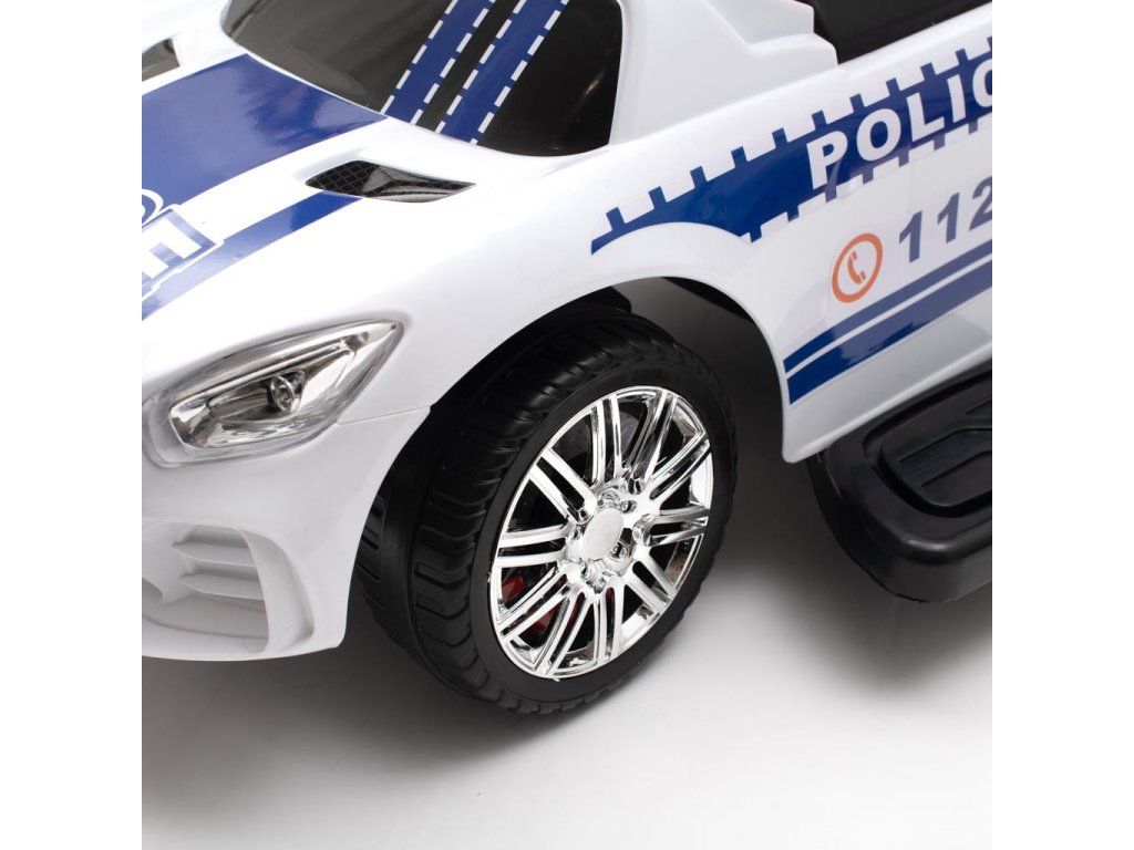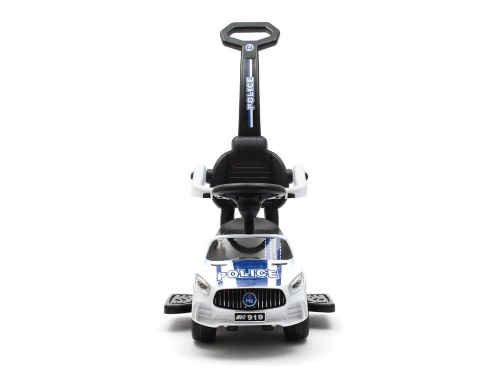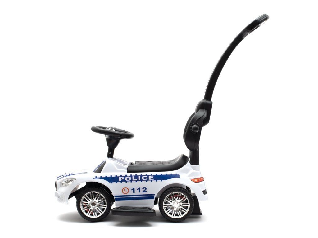 Policajné auto Baby Mix je skutočným zážitkom pre všetkých malých strážcov zákona. Dokonalé spracovanie a detaily, ako sú kolesá, svetlá alebo tvar karosérie, upútajú pozornosť každého a rýchlo sa stanú obľúbenou hračkou doma aj na prechádzke. Odrážadlo je vyrobené z kvalitných a odolných materiálov a je vybavený zvukovým panelom. Jazda pomáha rozvíjať motorické schopnosti dieťaťa a zaručuje veľa zábavy a radosti. Vďaka špeciálnej poistke na zadnej strane je váše dieťa chránené proti prevráteniu. Vodiaca tyč, opierky rúk a nôh sa dajú odňať a dieťa ho môže používať ako klasické odrážadlo.