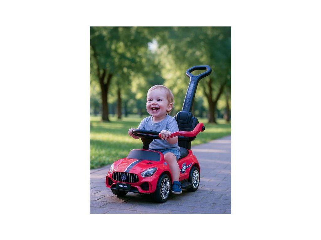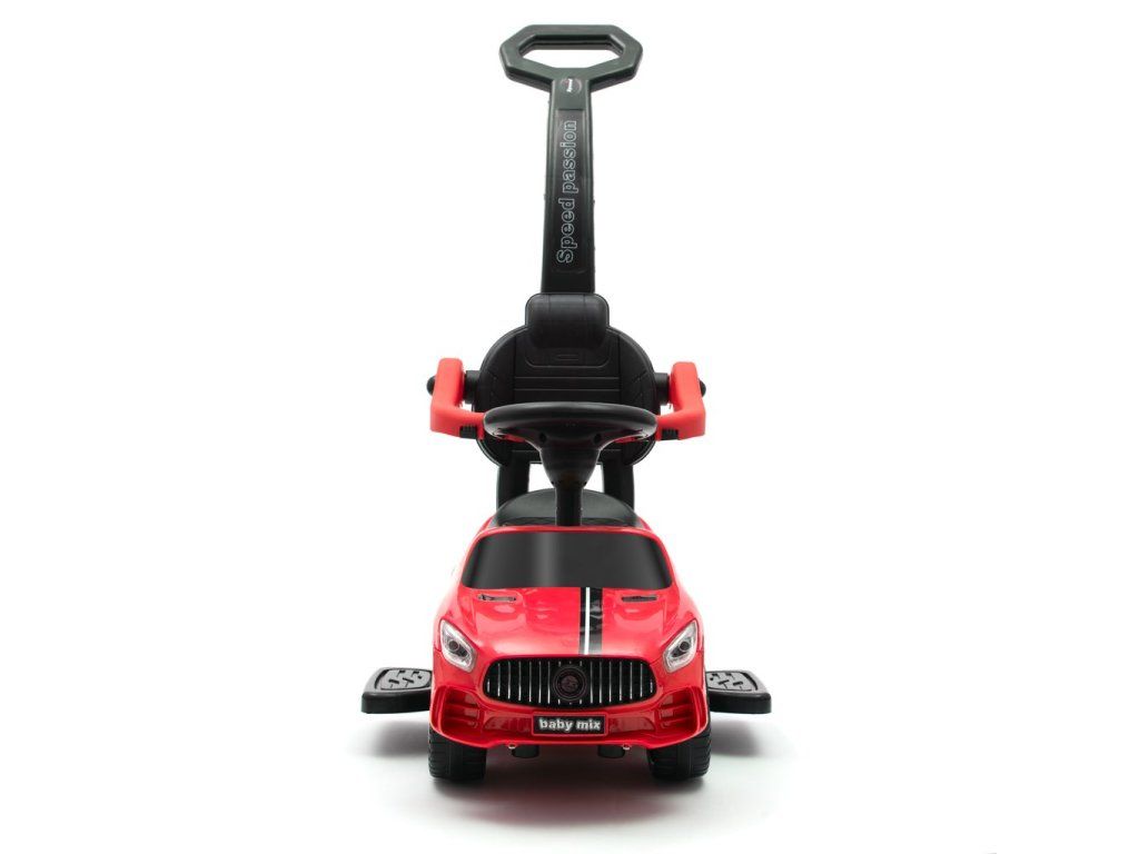 Auto Baby Mix RACER je skutočným zážitkom pre všetkých malých pretekárov. Dokonalé spracovanie a detaily, ako sú kolesá, svetlá alebo tvar karosérie, upútajú pozornosť každého a rýchlo sa stanú obľúbenou hračkou doma aj na prechádzke. Odrážadlo je vyrobené z kvalitných a odolných materiálov a je vybavený zvukovým panelom. Jazda pomáha rozvíjať motorické schopnosti dieťaťa a zaručuje veľa zábavy a radosti. Vďaka špeciálnej poistke na zadnej strane je váše dieťa chránené proti prevráteniu. Vodiaca tyč, opierky rúk a nôh sa dajú odňať a dieťa ho môže používať ako klasické odrážadlo.