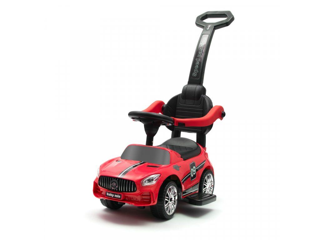 Detské odrážadlo so zvukom a vodiacou tyčou Baby Mix RACER červené - 45830