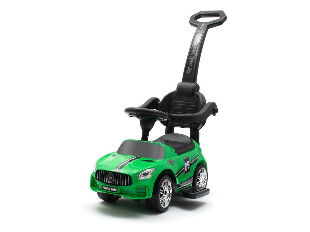 Detské odrážadlo so zvukom a vodiacou tyčou Baby Mix RACER zelené - 45829