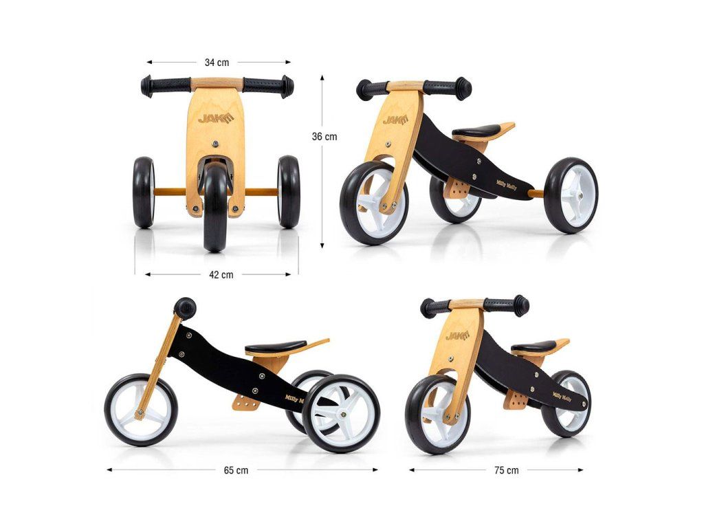 Detské multifunkčné drevené odrážadlo Milly Mally JAKE je ideálne pre deti, ktoré sa práve začínajú učí jazdiť na bicykli a pritom nie sú schopné udržať rovnováhu na dvoch kolesách. Výhodou odrážadlá JAKE je, že z trojkolky sa ľahko stane odrážadlo na dvoch kolesách.Charakteristika: