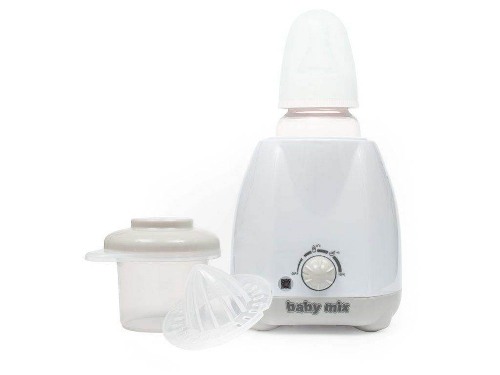Elektrický ohrievač fliaš Baby Mix s príslušenstvom. Ohrievač ľahko a bezpečne ohrieva a rozmrazuje materské či iné mlieko v dojčenských fľašiach. Ohrievač je možné využiť pre všetky typy dojčenských fľaštičiek, alebo nádob na jedlo. Plynulé nastavenie teploty od cca 40 - 100 ° C. Súčasťou je automatický bezpečnostný vypínač, funkcia udržiavania tepla. Príslušenstvo: hrnček, veko a citrusovač. Rozmery cca 15x15 cm, priemer otvoru pre fľašu cca 7,5 cm.