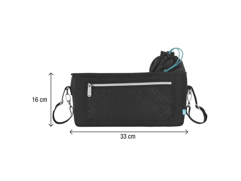 - možno upevniť na rukoväť kočíka alebo nosiť cez rameno