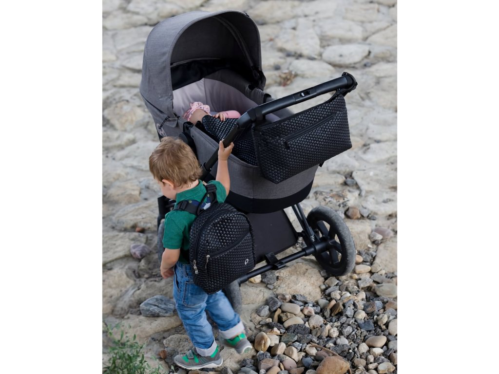 Úplne uzatvárateľný organizér na kočík, kde budete mať všetky dôležité veci na bábätko prehľadne usporiadané a pod kontrolou.Prešívaný materiál.