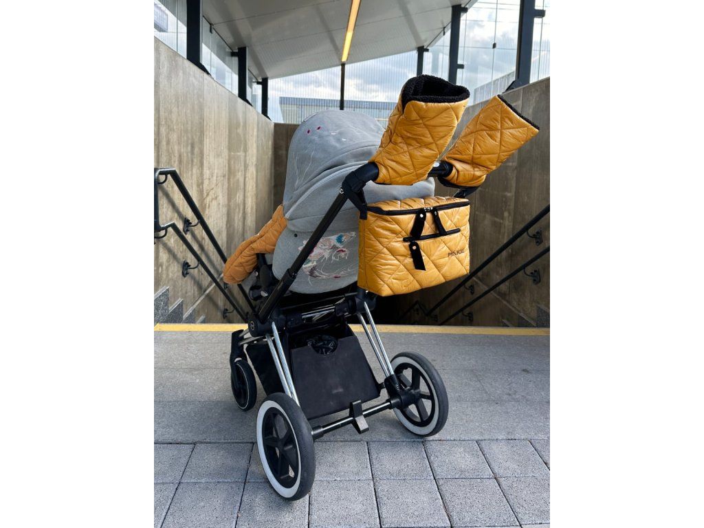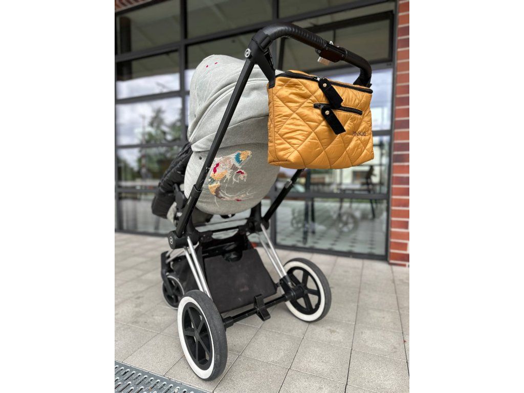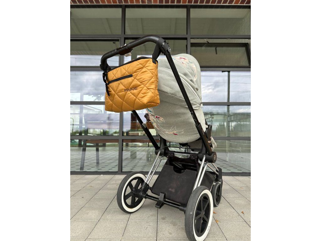 Úplne uzatvárateľný organizér na kočík, kde budete mať všetky dôležité veci na bábätko prehľadne usporiadané a pod kontrolou.Prešívaný materiál.
