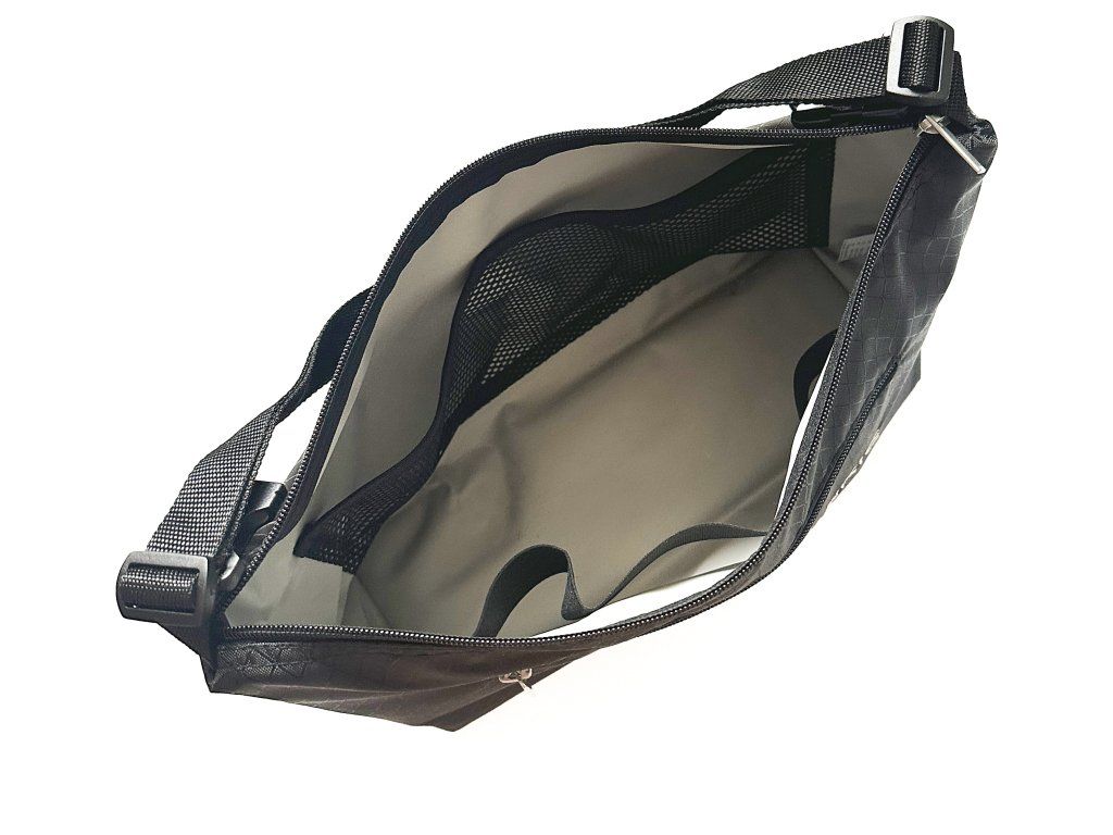 Vo vnútri je vrecko na drobnosti a tri očká z gumy, kam ľahko a bezpečne môžete postaviť fľašku s pitím.